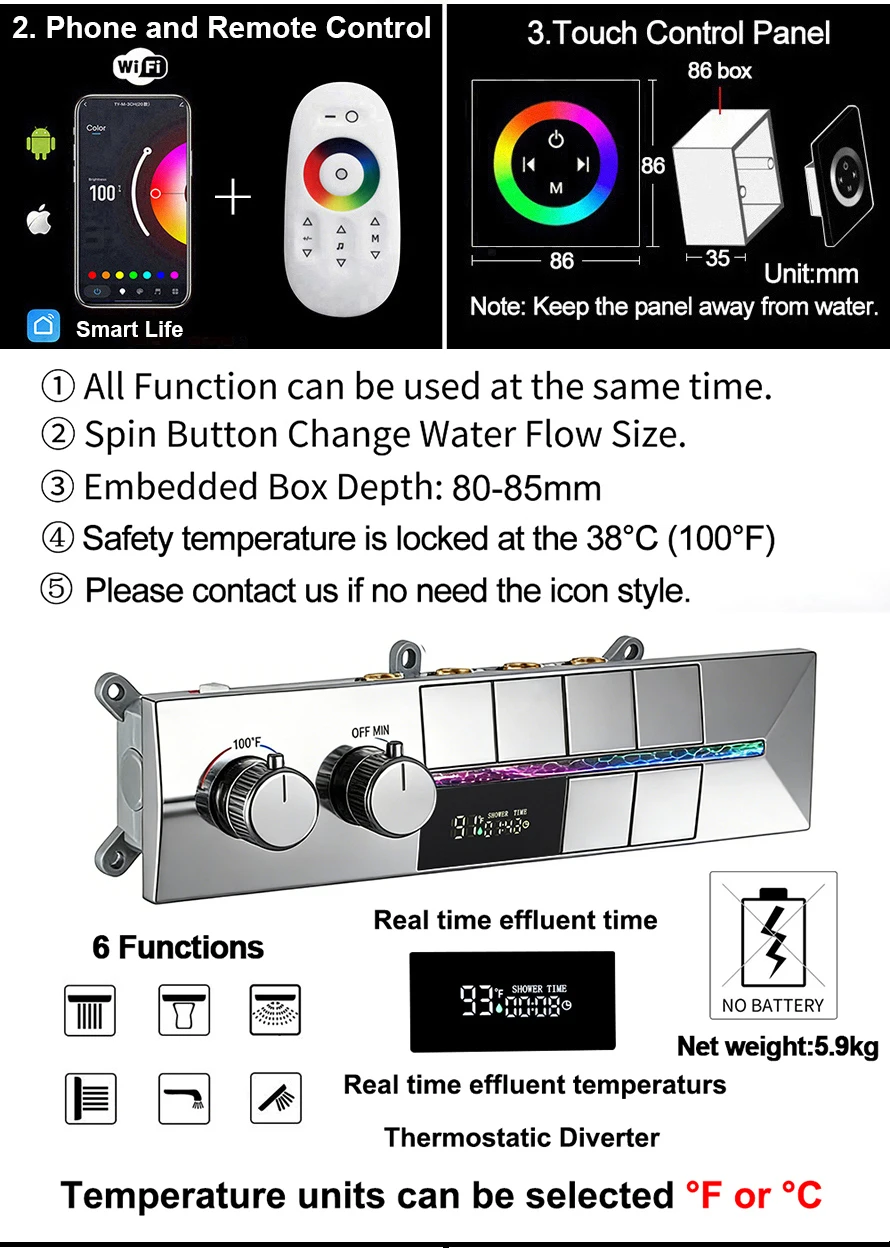 - Shower Systems Functions: 6 Functions