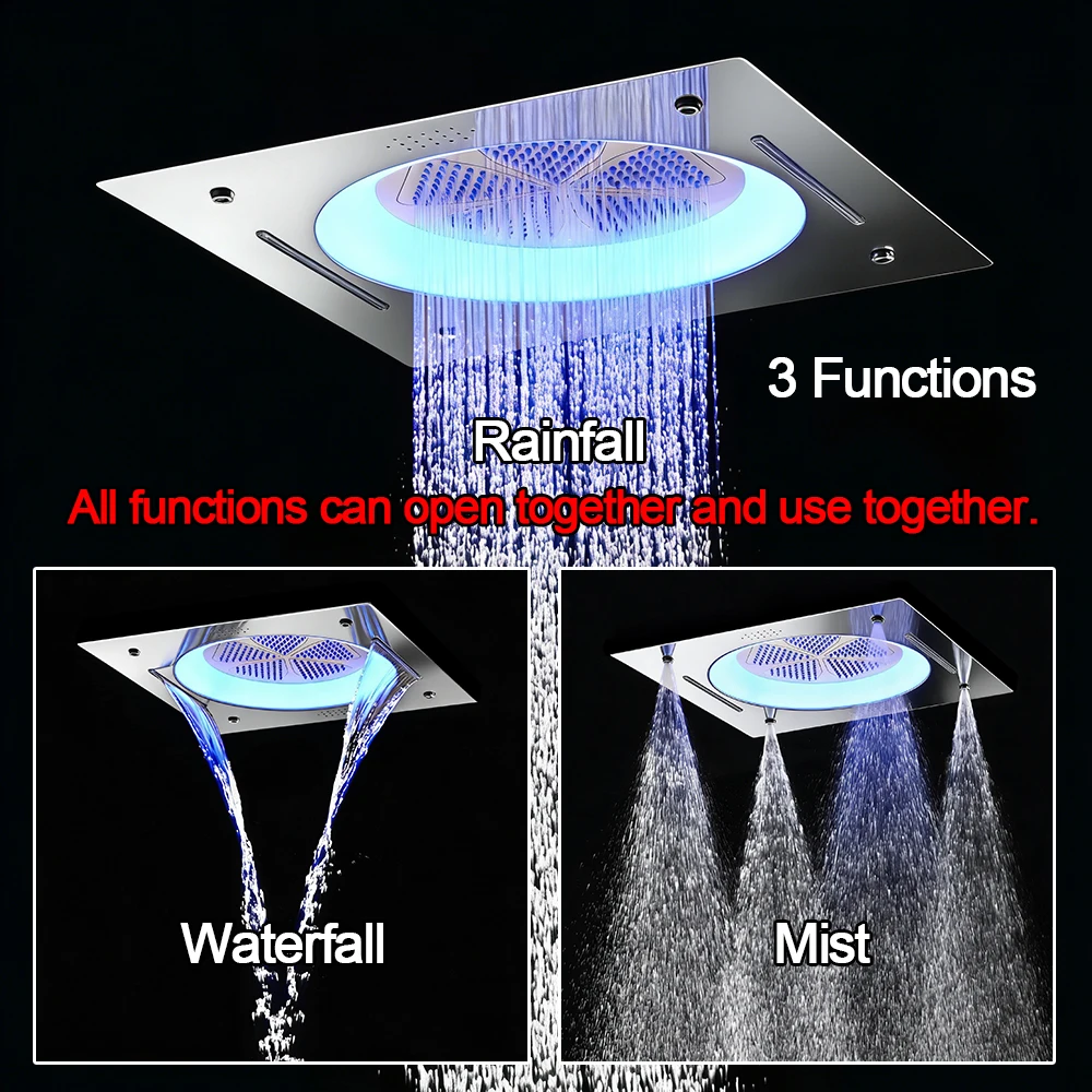 - LED Shower Head Functions: Rainfall,Waterfall,Mist