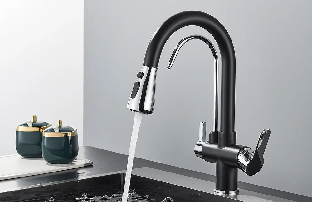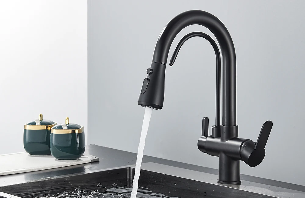 Quyanre Matte Black Filtered Crane For Kitchen Pull Out Spray 360 Rotation Water Filter Tap Three Ways Sink Mixer Kitchen Faucet