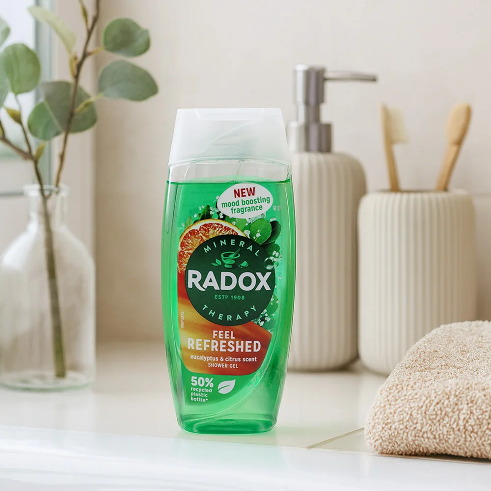Refresh your senses with Radox Feel Refreshed Shower Gel. Infused with invigorating eucalyptus and zesty citrus oil, this mineral-rich body wash revitalises your skin and mood. Formulated with 4 minerals and 13 herbs, it cleanses gently while leaving your skin feeling fresh, soft and energised. Suitable for daily use, it rinses off easily and is perfect for all skin types, transforming your shower into a rejuvenating experience.