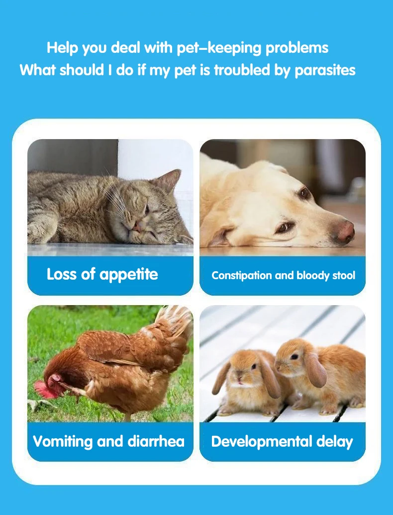 Rapid deworming for pet dogs, cats, domestic animals, pigs, sheep, ticks, fleas, roundworms, hookworms and nematodes