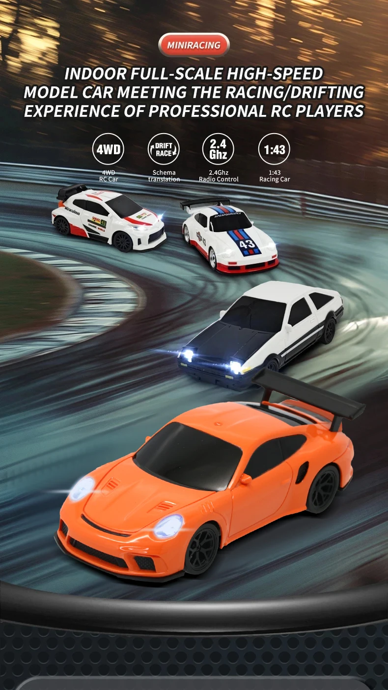 #1/43 Scale RC Drift Race Car Gyro 4WD Ready to Go Mini Car Toy High Speed Model