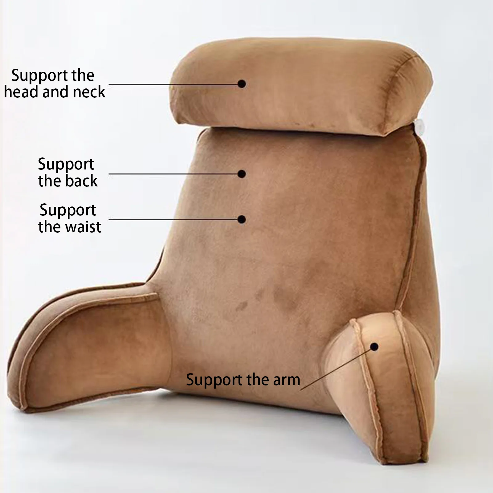 Backrest Lounge Cushion with Arm Support Backrest Support Pillow Bedside Multi-function Large Backrest Cushion for Bed Rest Reading Watching TV Gaming Features: 1.Strong Back and Arm Support: This backrest reading pillow offers steady comfort as a reading bed rest pillow for adults, providing reliable support whether you’re reading, resting, or working in bed or on the couch. 2.Ideal for All Ages: Suitable for both adults and children, this reading bed rest pillow is ideal for use in bedrooms, dorm rooms, or living rooms, making it a cozy choice for the entire family. 3.Versatile Multipurpose Use: Use as a backrest lounge cushion, a prop-up pillow, or a comfortable support pillow on beds, sofas, or in dorms, adapting effortlessly to your relaxation or productivity needs. 4.Extra Large Ergonomic Design: With generous size and thoughtfully designed armrests, this backrest support pillow delivers comprehensive upper body support for reading, gaming, or extended work sessions. 5.Premium Quality & Easy Care: Features a shredded memory foam core, a washable microplush cover, dedicated neck support, and handy pockets, ensuring your bedside multi-function large backrest cushion is both sturdy and convenient.