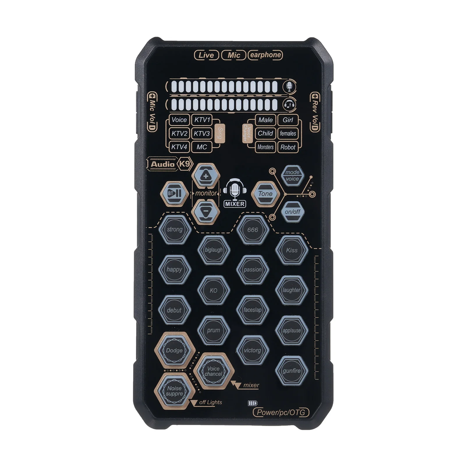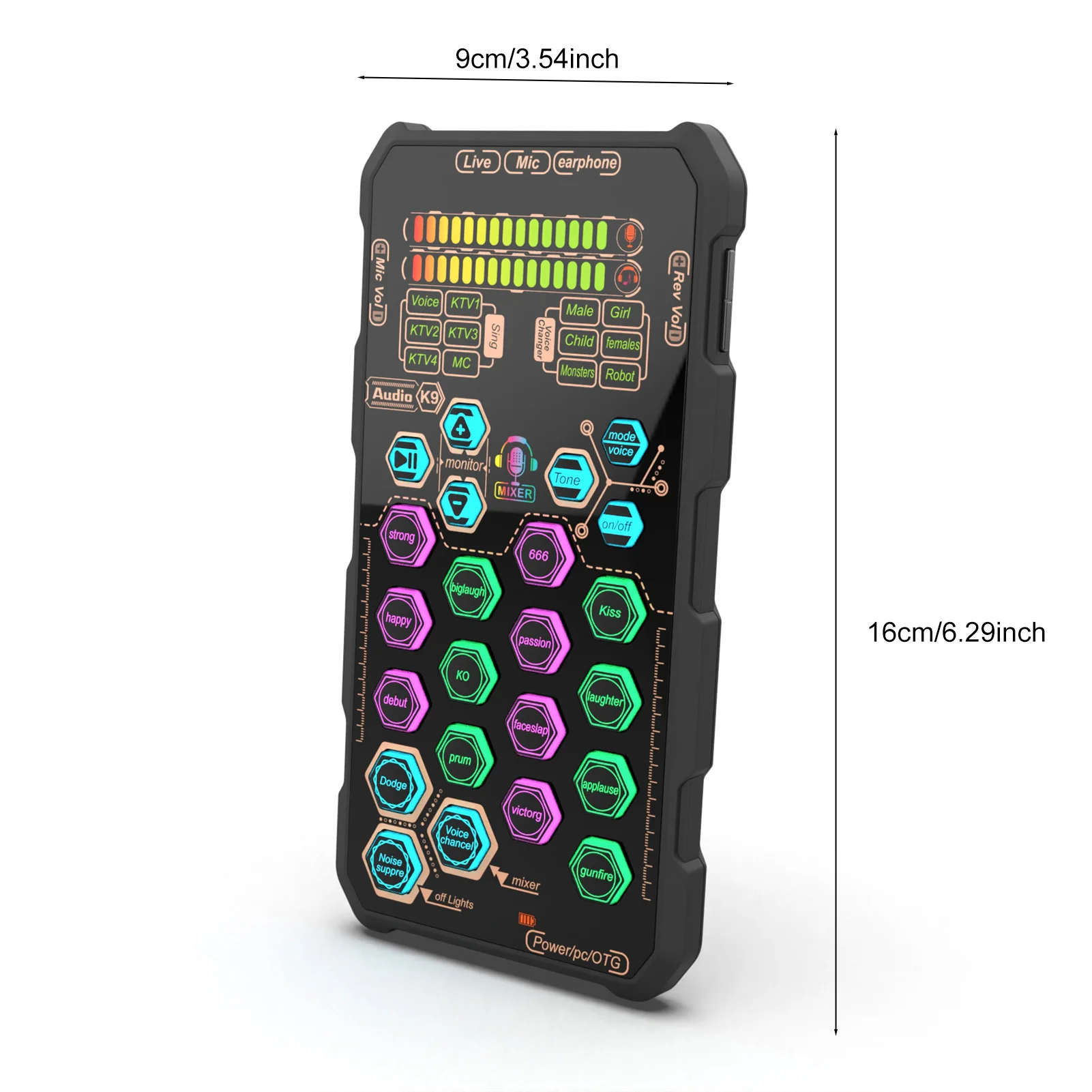 K9 Handheld Live Sound Card Sound Board Set with Voice Change for Podacsting Broadcasting Singing Recording