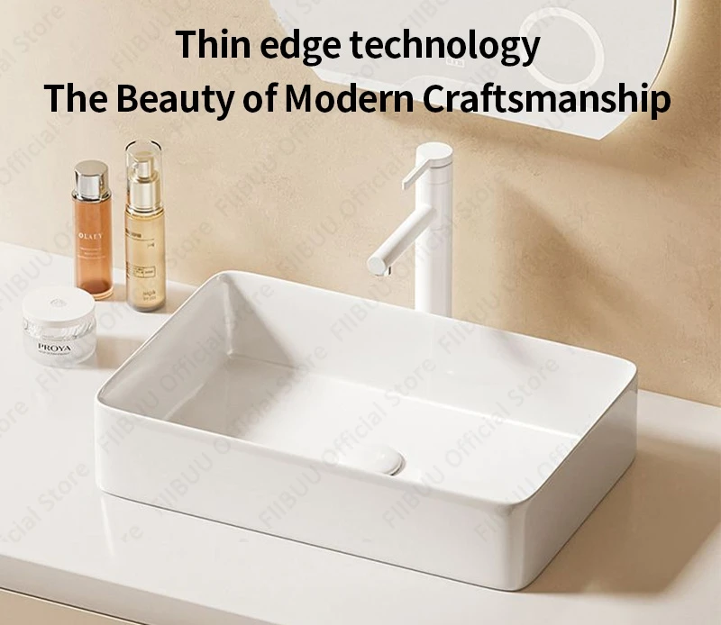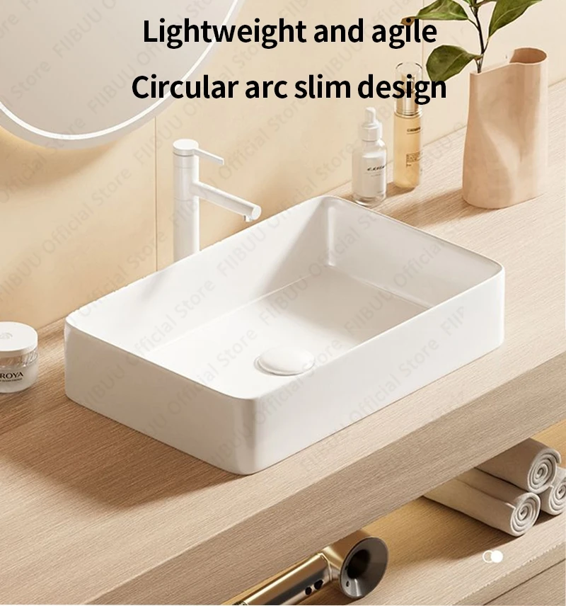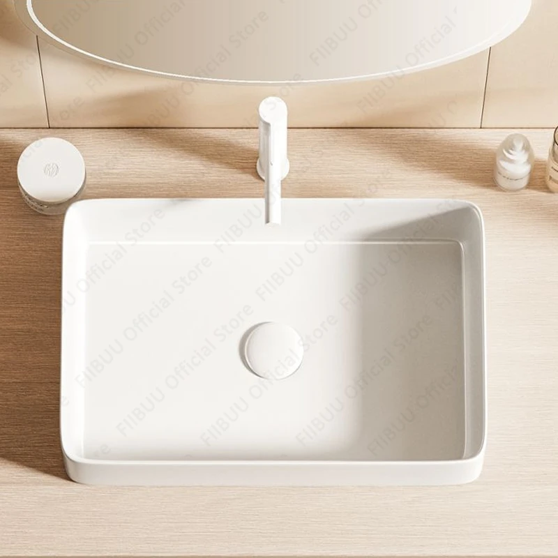 Rectangular White Ceramic Vessel Sink Bathroom Table Sink For Home Apartment Balcony Lavatory Vanity Sink Countertop Wash Basin