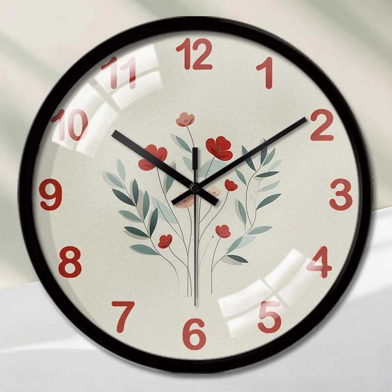 Red Flower Bouquet Cartoon Round Silent Hanging Wall Clock,Suitable For Living Room,School,Study Room,Bedroom, Children’s Gifts.