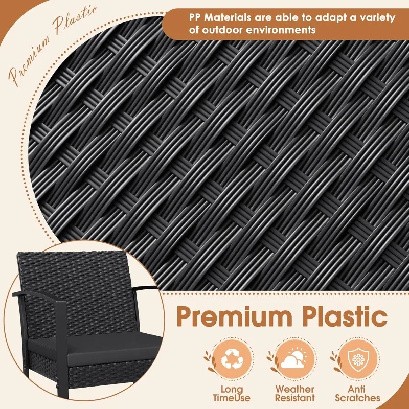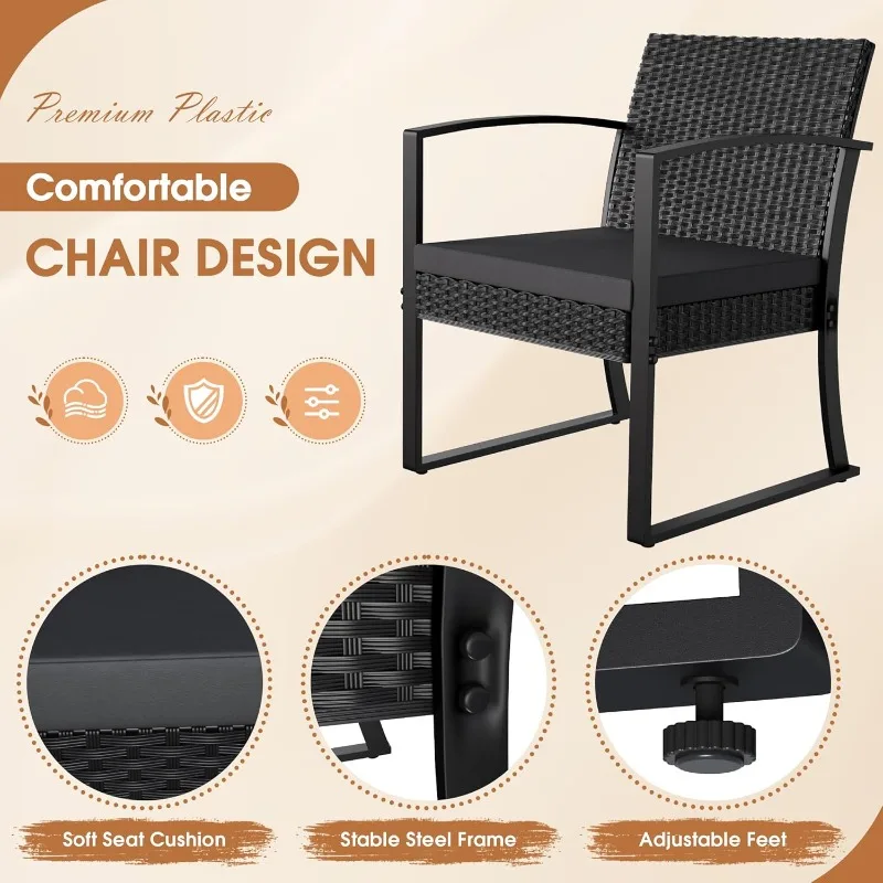 Resin 3 Pieces Patio Furniture Set, Outdoor Bistro Set with Cushions and Glass Table, Conversation Set Rattan Chair for Porch, Balcony, Poolside, Garden (Black)