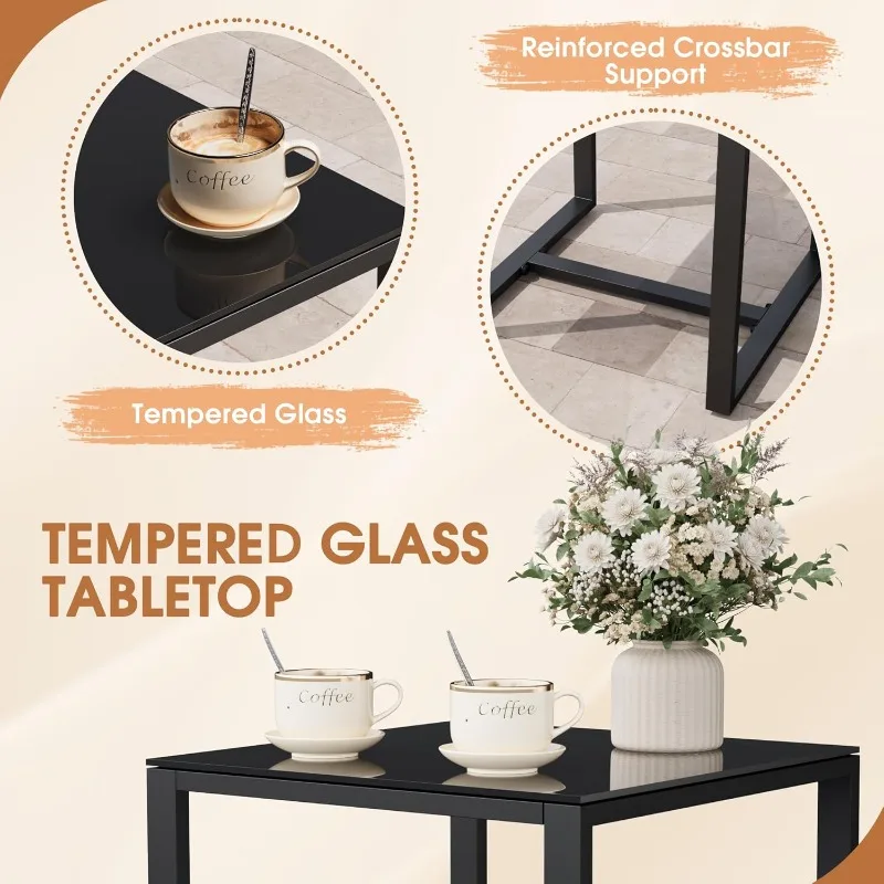 Tempered Glass Table: The coffee table is equipped with a beautiful tempered glass tabletop. The reinforced crossbar support ensures the stable structure of the table