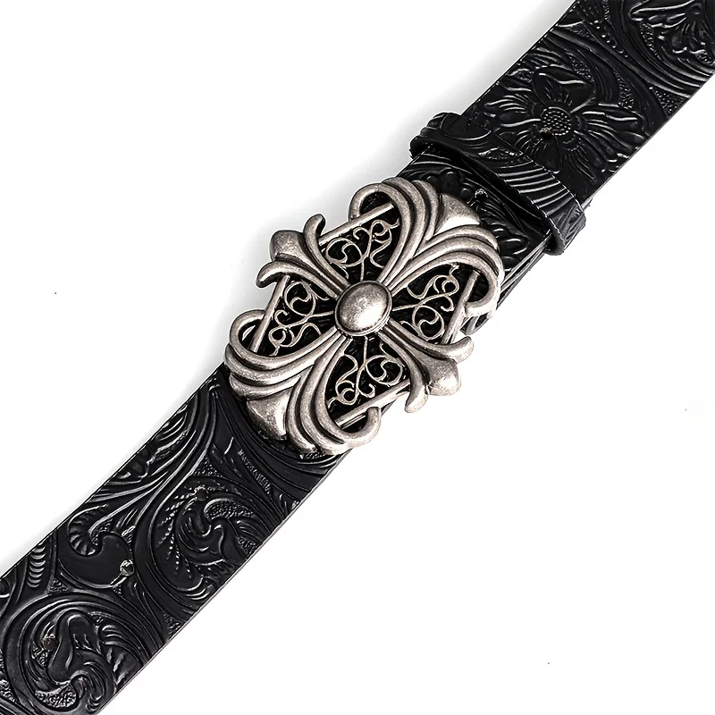 Insanely good quality for its price. Feels like real leather, belt buckle feels like real metal, etc. The floral type design on the belt is pretty nice too