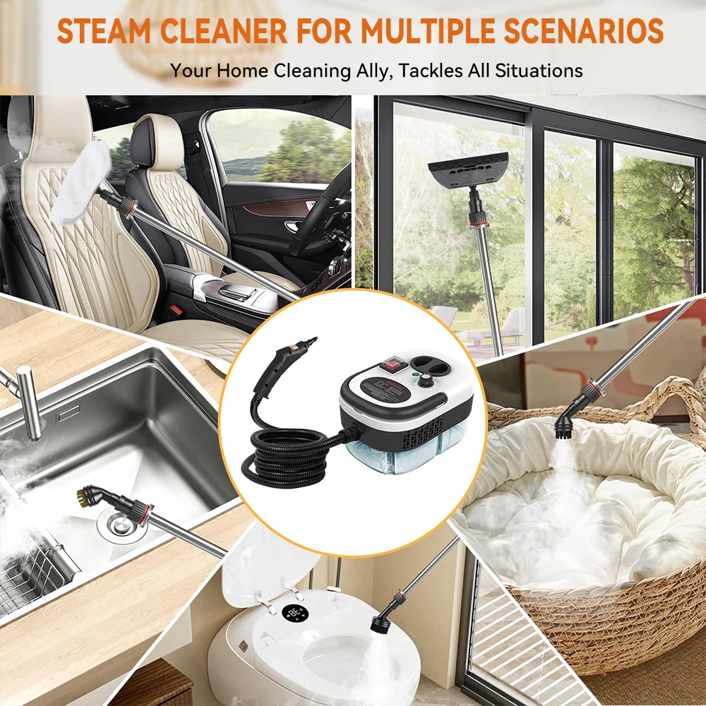 1. Powerful 2500W High-Temp, High-Pressure Steam: Boasts a 2500W heating core that rapidly reaches 221°F (105°C) and 3BAR pressure in just 10-15 seconds. Effortlessly blasts away stubborn grease, grime, and stains from kitchen counters, stoves, ovens, and more—no harsh chemicals required for deep cleaning.