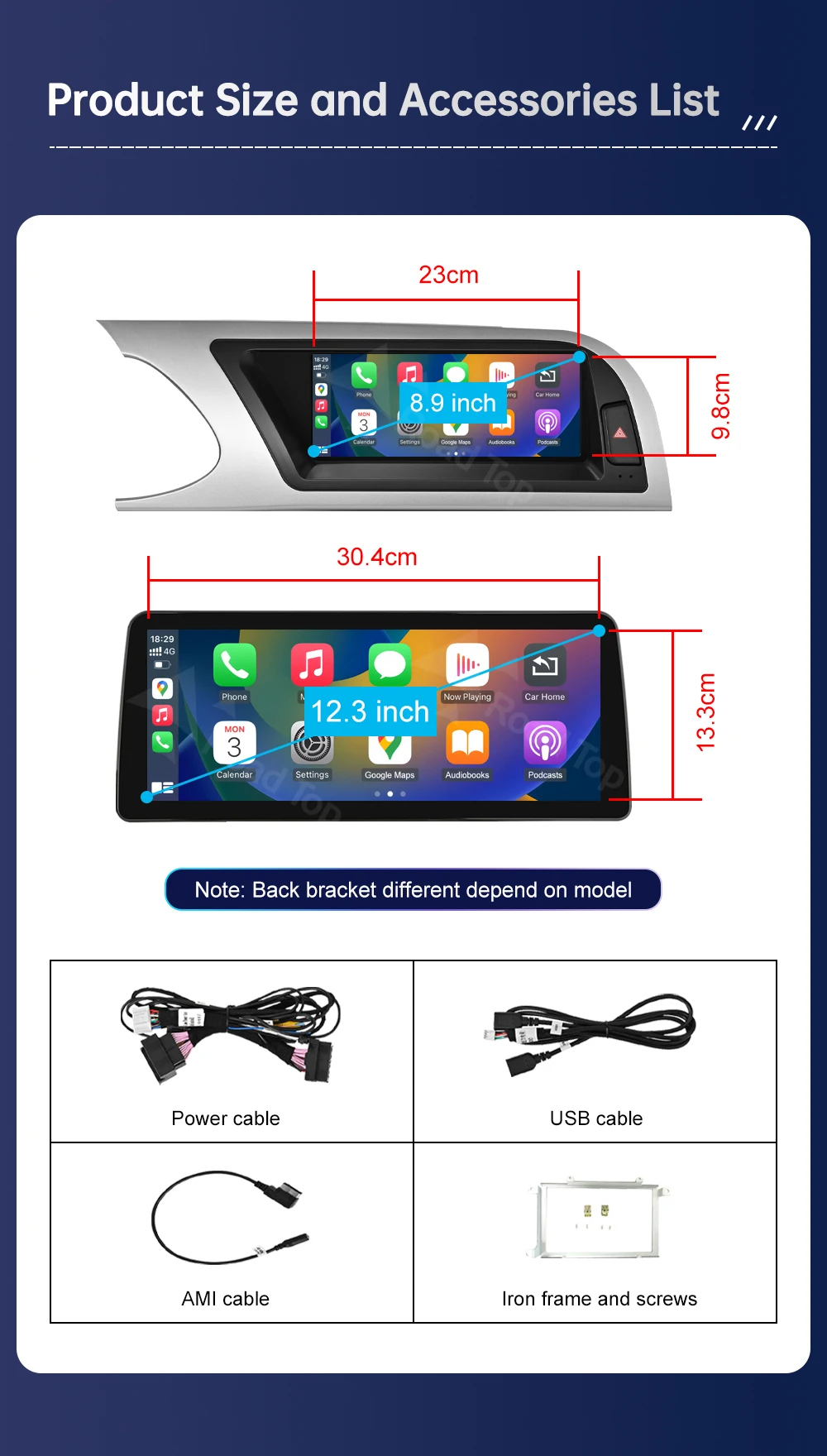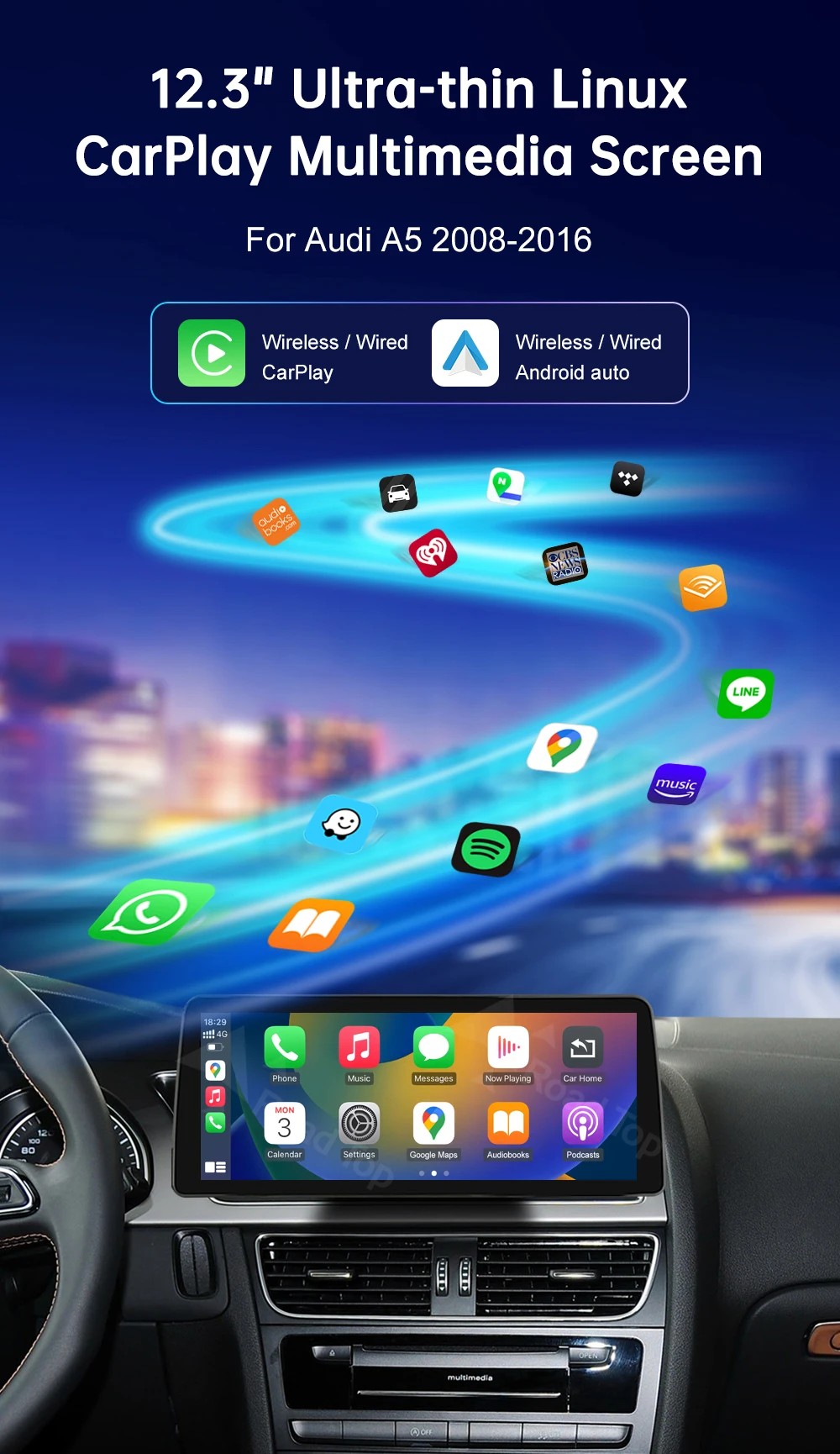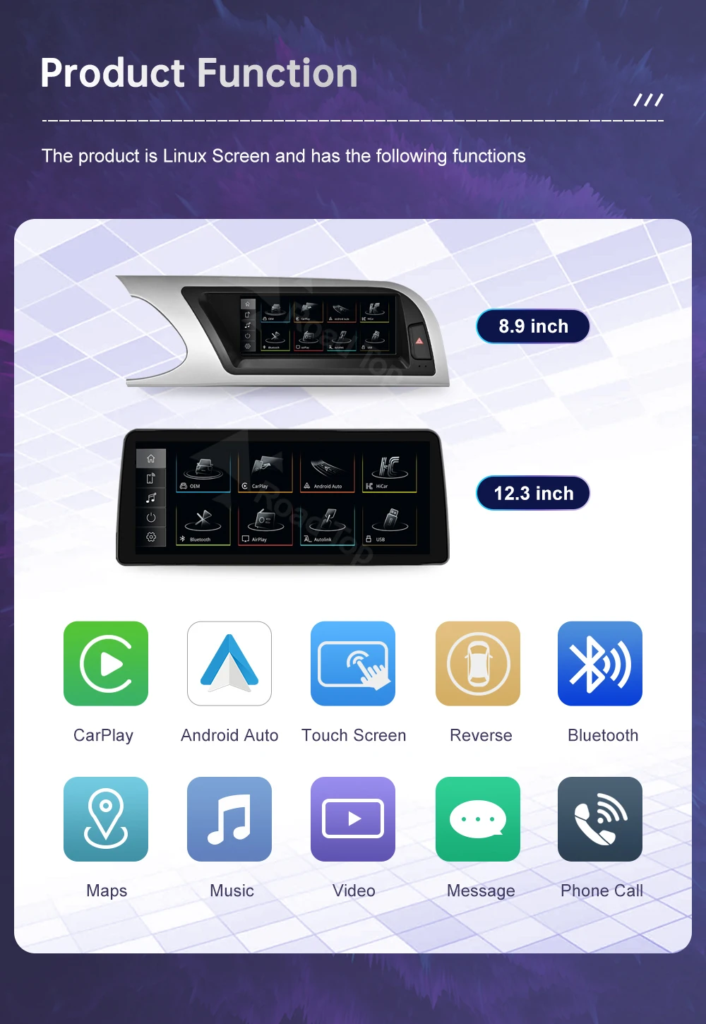 8.8inch 12.3inchCar Multimedia Touch Screen For Audi A5 2008-2016 with Wireless CarPlay Android Auto Airplay Functions