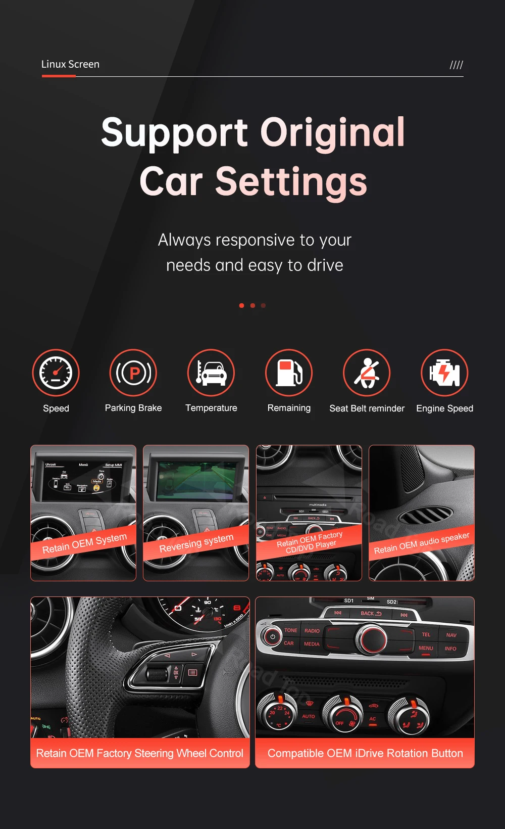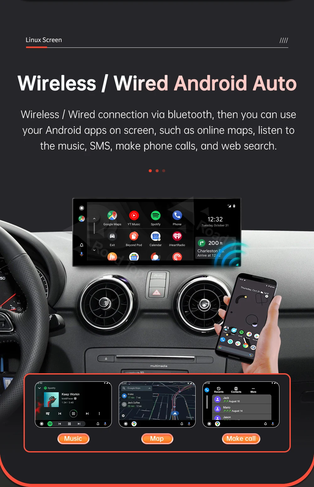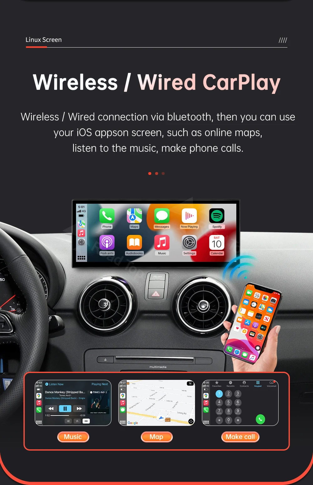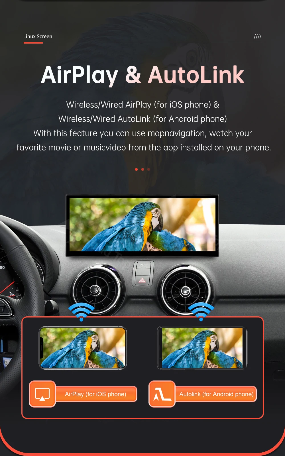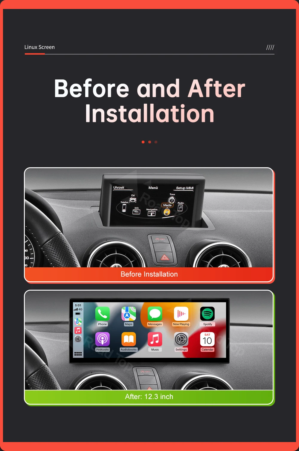 The screen is excellent, no complaints, it couldn’t be better. You get both cables for the connection, so it doesn’t matter what software you have in your Audi A1, it will always work.