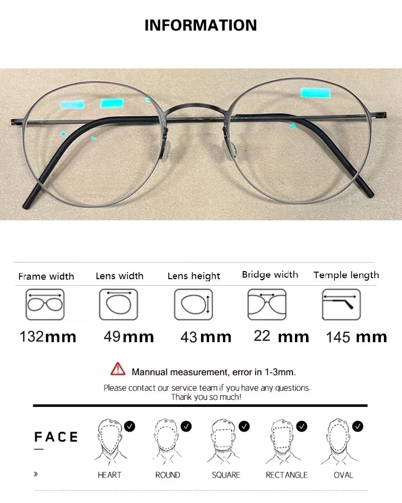 Round Oval Glasses Frames Men Women Eyeglasses Air Titanium Ultra Light 6g Light Thin Rim Denmark Screwless Fashion Classic 5504