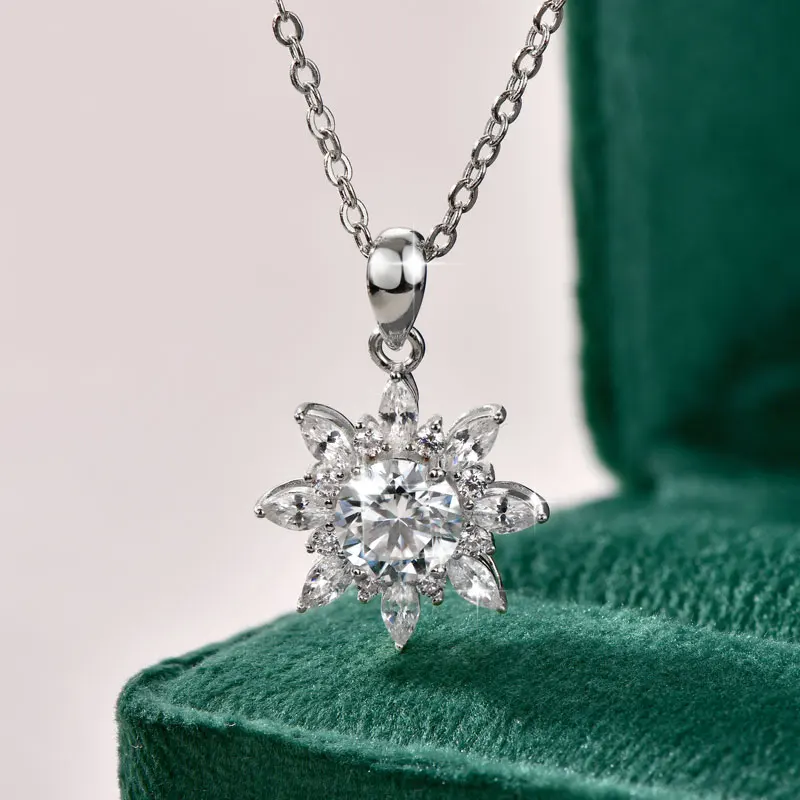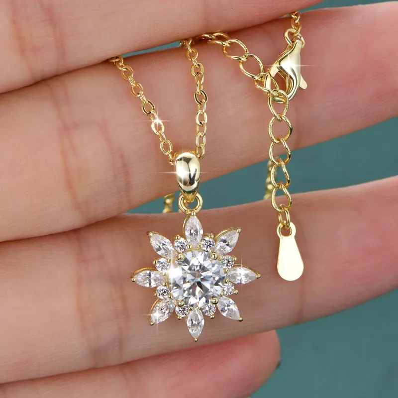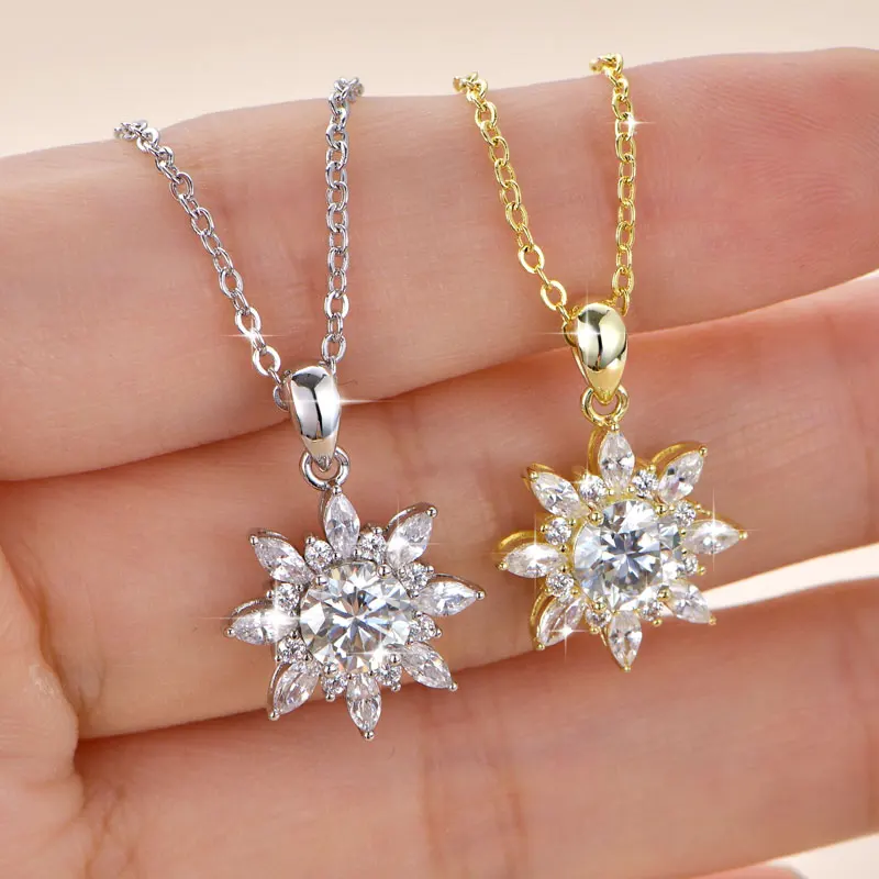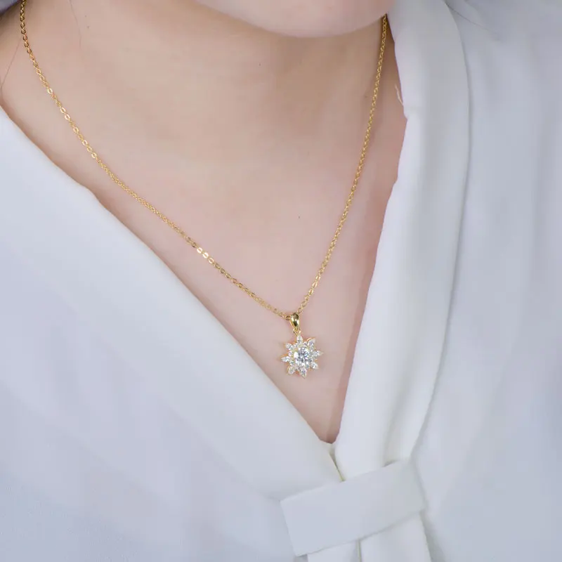 - Necklace Style 1: 14K Gold-Plated Necklace,1CT 6.5MM Round Moissanite Pendant Necklace