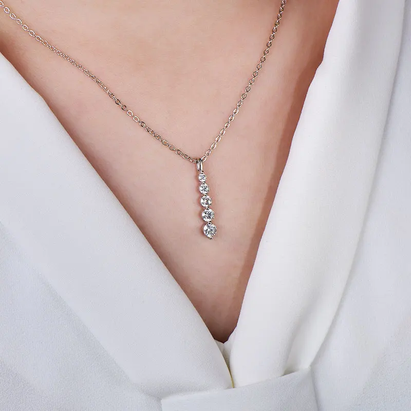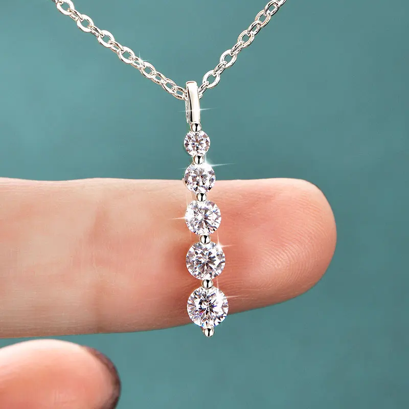 Rrjzz 5-Stone Moissanite Pendant Necklace D Color VVS1 Round Lab Diamond 14k Gold Silver Plated Necklace Jewelry Gifts with GRA