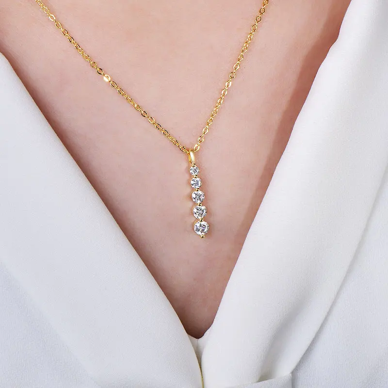 - Necklace Style 1: 14K Gold-Plated Women Necklace,5 Stone Moissanite Pendant Necklace