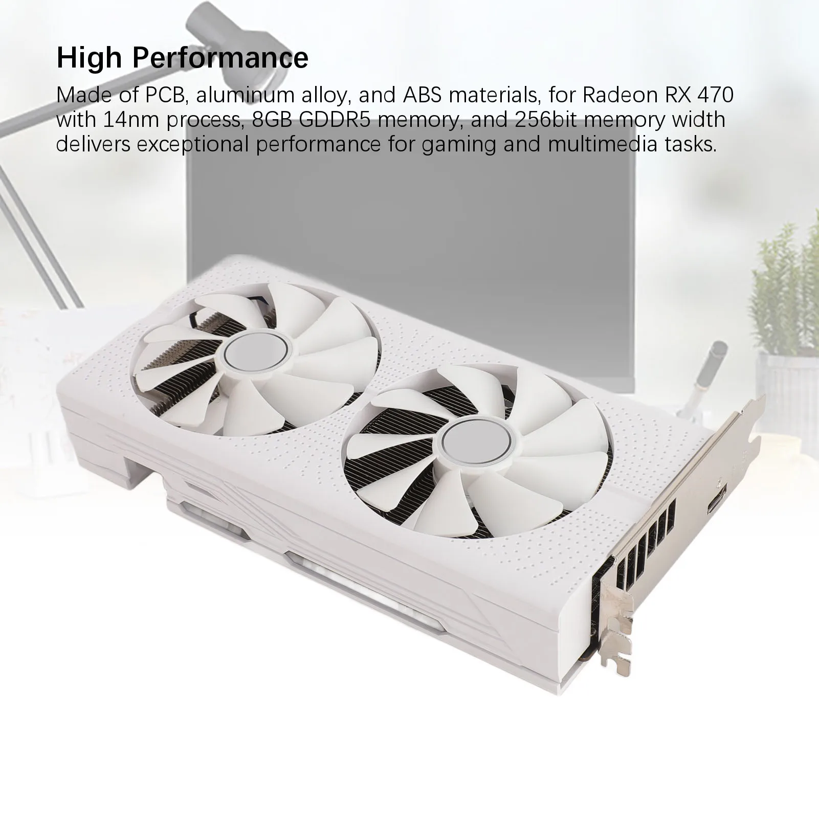 RX470 8GB GDDR5 256bit Dual Fan Graphics Card PCI Express 3.0 X16 HD Multimedia Interface Gaming Graphics Card with Cable