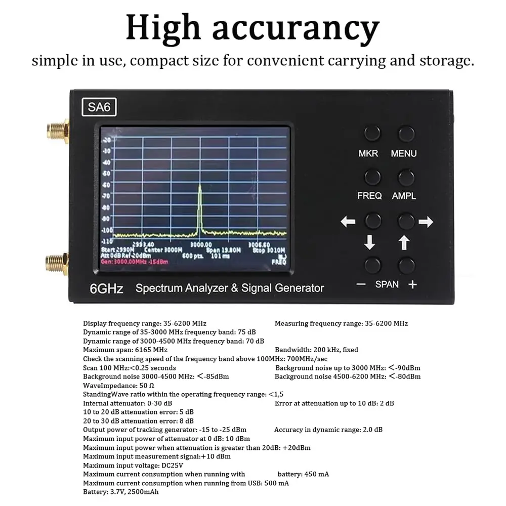SA6 6GHz Spectrum Analyzer Signal Generator Wi Fi RF Gain Professional Frequency EMC High Precision Signal Detection
