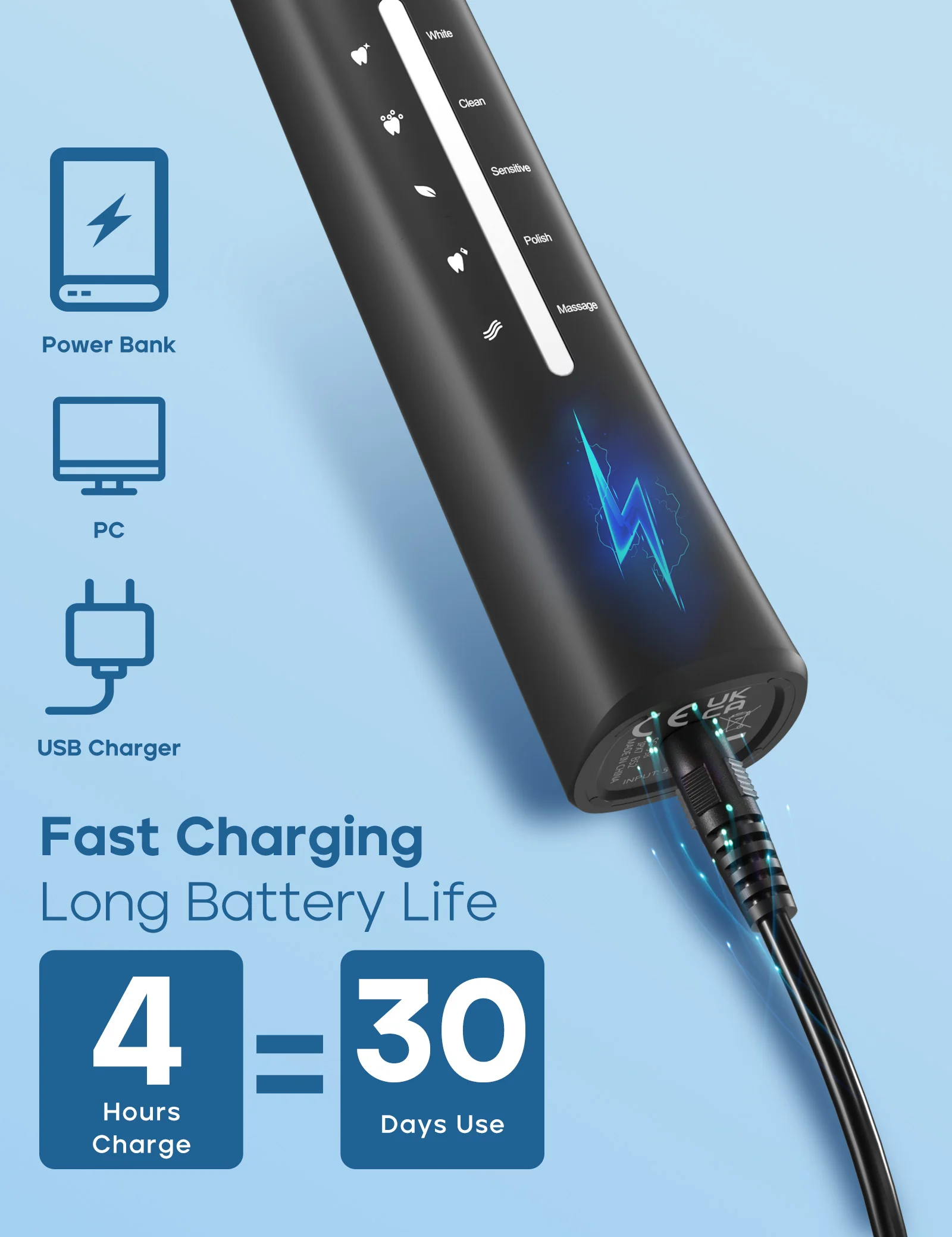 Enjoy uninterrupted brushing with a 30-day long battery life, ensuring convenience and efficiency.