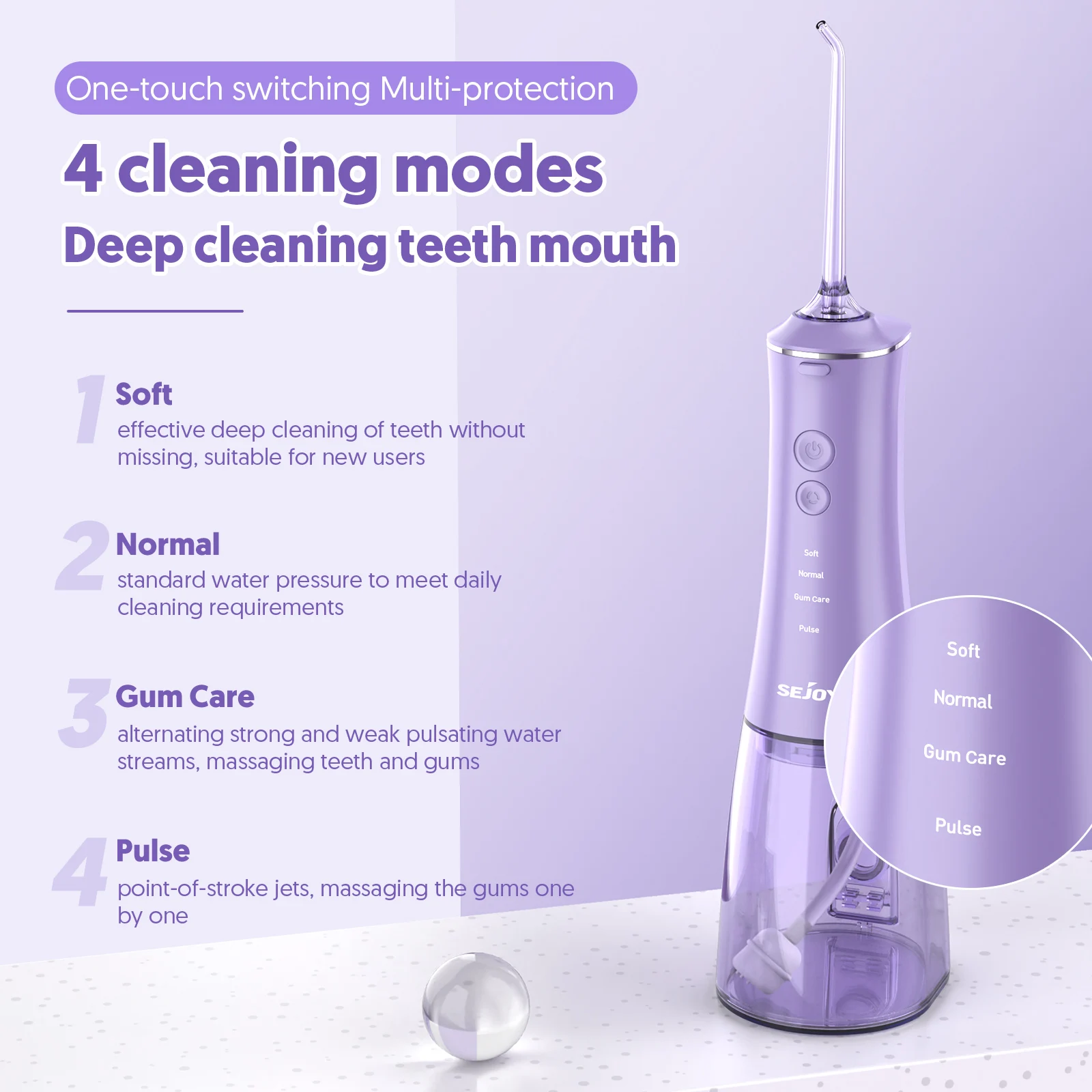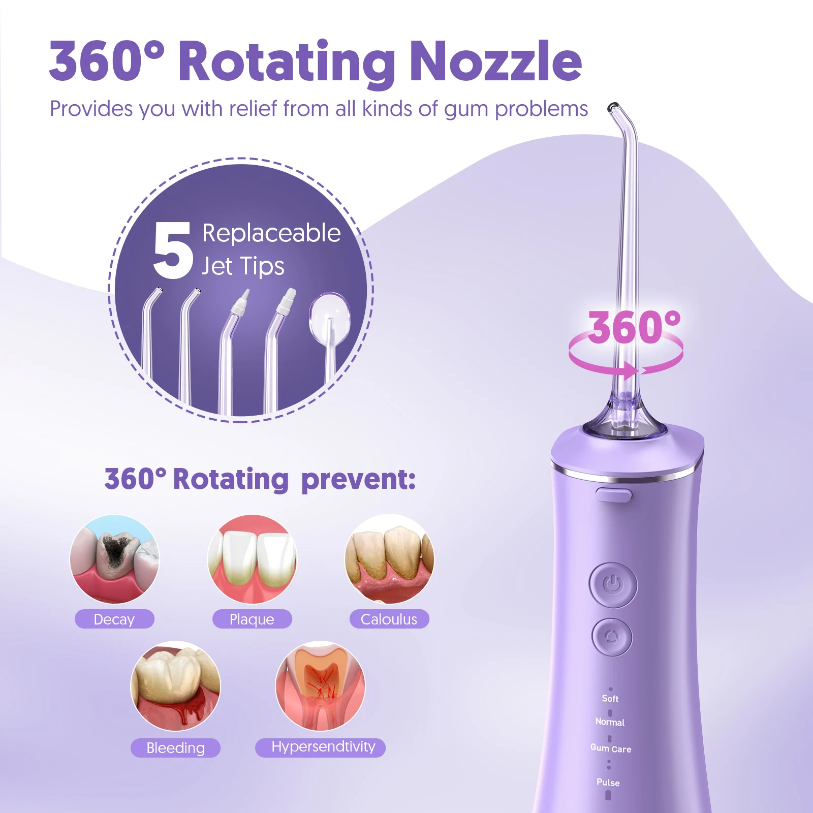 【 Super Long Battery Life &T IPX7 Waterproof】Water dental piks With powerful and environmental battery, fully charged need 4 hours and used continuously for about 30 days. With dual-sealing protection, Our water flosser cordless is leakproof and IPX7 waterproof,ensuring safe use for bathroom or shower. Come with USB cable,compatible with various charging devices. Perfect for travel and home use!