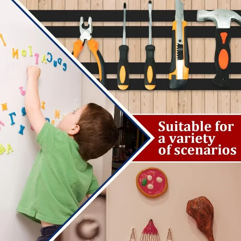Features: Stable magnetic force, can be cut, comes with adhesive backing