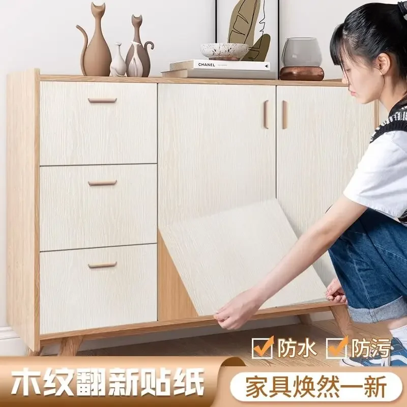 Self-Adhesive Wall Stickers Wood Grain Paper Furniture Cabinets Stickers Living Room Bedroom Walls Home Decoration Wallpapers