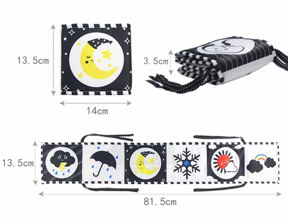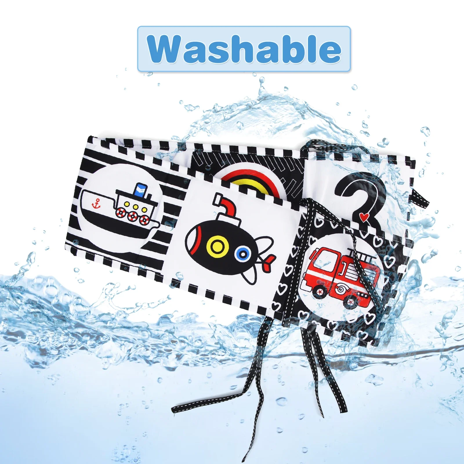 【Interesting Tummy Time Toys】This double-sided design of the cloth book has different patterns. The black and white baby sensory book will aid visual development of baby and also help babies to develop their ability to focus their attention and concentration, and can encourage baby to explore and gives baby endless fun.