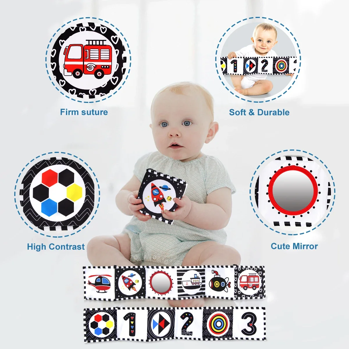 【Best Gifts for Baby Boys and Girls】The baby cloth book focuses on helping newborns stimulate their vision development and brain development. Our infant book would be the perfect gift for your baby as Birthday gift, Christmas gift, Newborn gift, Thanksgiving gift, New Year gift, Baby Shower Party gift.