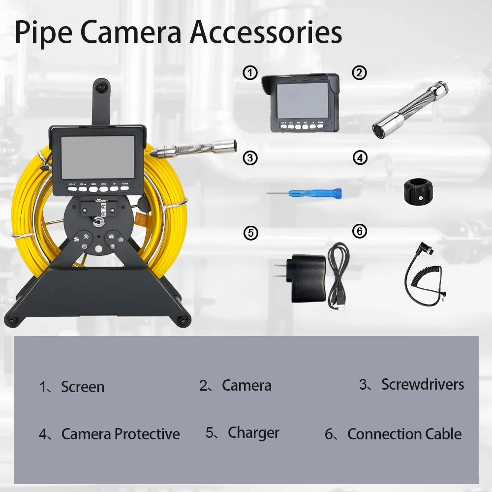 1. The pipe inspection camera combines a camera-tipped probe with 4.3 inch monitor for viewing hard-to-reach inspection area.