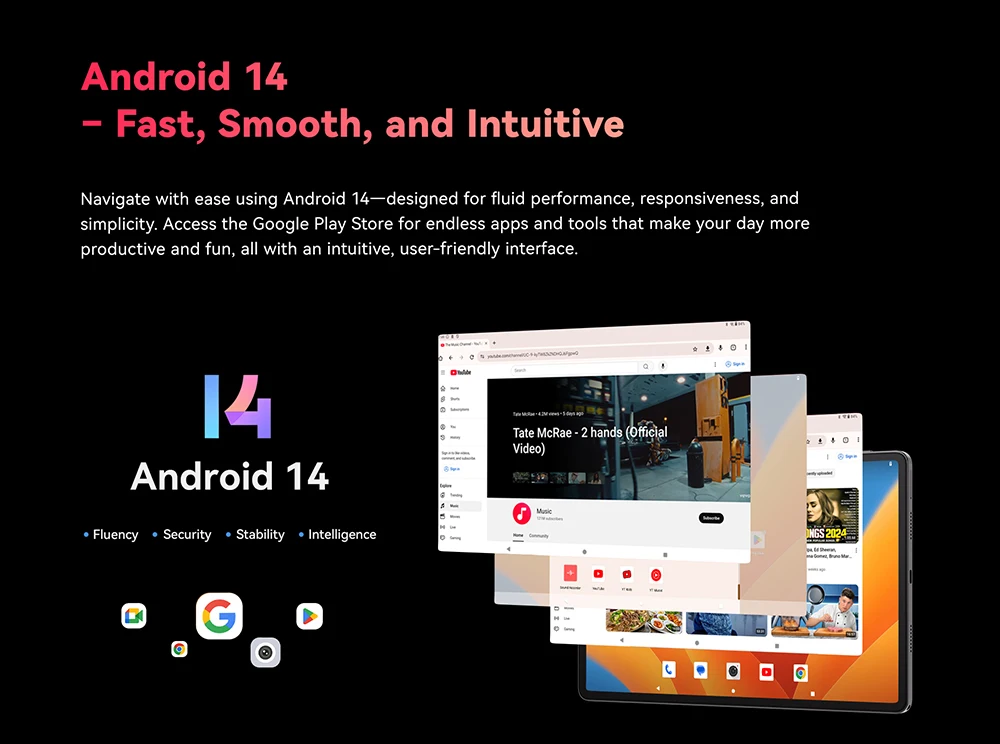 Navigate with ease using Android 14—designed for fluid performance, responsiveness, and simplicity. Access the Google Play Store for endless apps and tools that make your day more productive and fun, all with an intuitive, user-friendly interface.