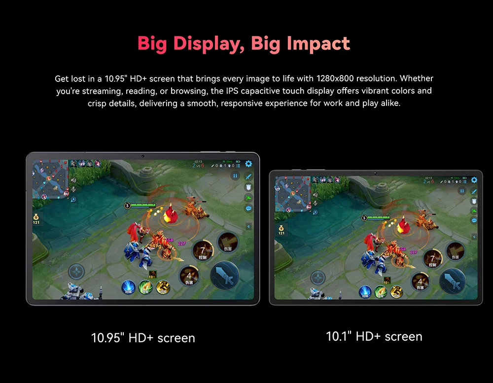 Get lost in a 10.95" HD+ screen that brings every image to life with 1280×800 resolution. Whether you're streaming, reading, or browsing, the IPS capacitive touch display offers vibrant colors and crisp details, delivering a smooth, responsive experience for work and play alike.