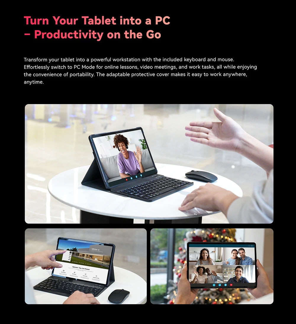 Transform your tablet into a powerful workstation with the included keyboard and mouse. Effortlessly switch to PC Mode for online lessons, video meetings, and work tasks, all while enjoying the convenience of portability. The adaptable protective cover makes it easy to work anywhere, anytime.