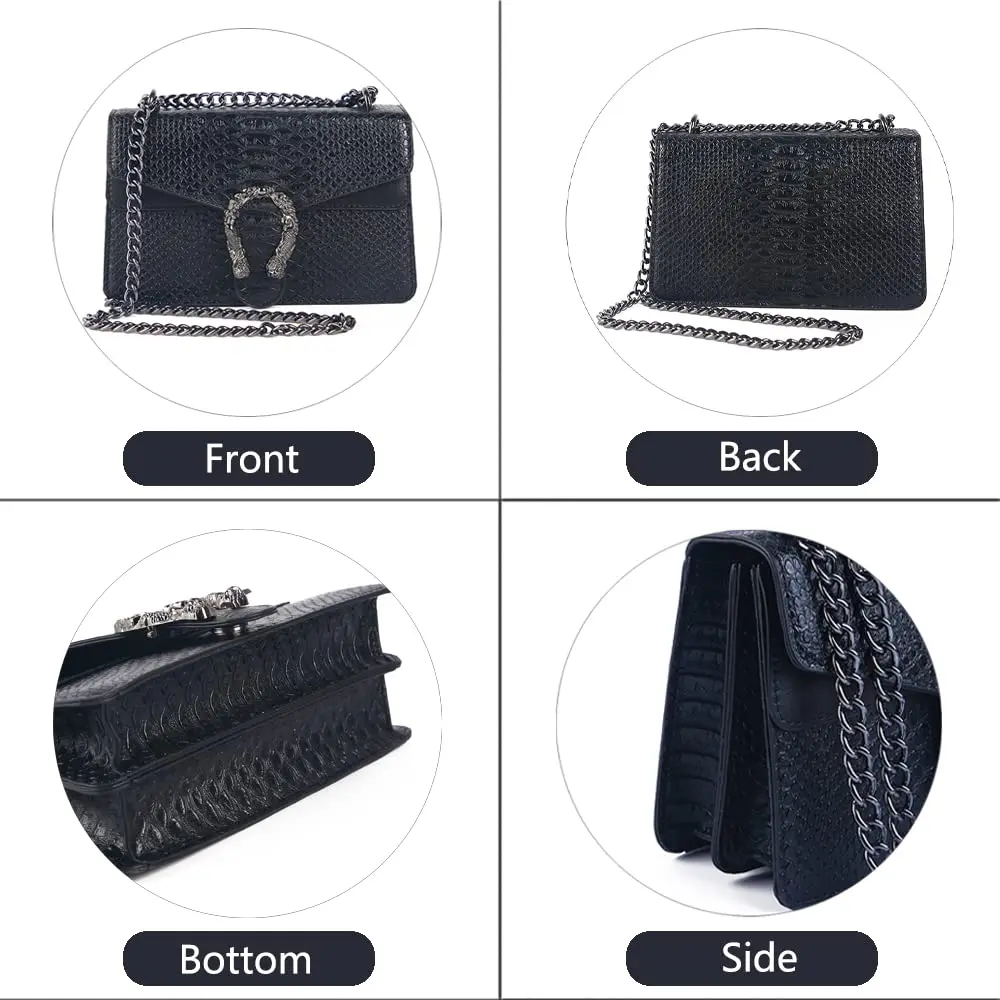 - Metal Chain Bag: Black Leather Purse,Crossbody Bag