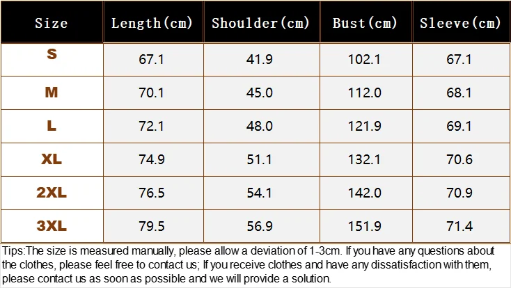 Note:Size mearsured by ourselves, sometimes has some errors, but always within 3cm.” Please note 1 cm = 0.39 inch,1 inch = 2.54 cm. Please feel free to contact us when finding difficulty in choosing size,we will give you the best option.