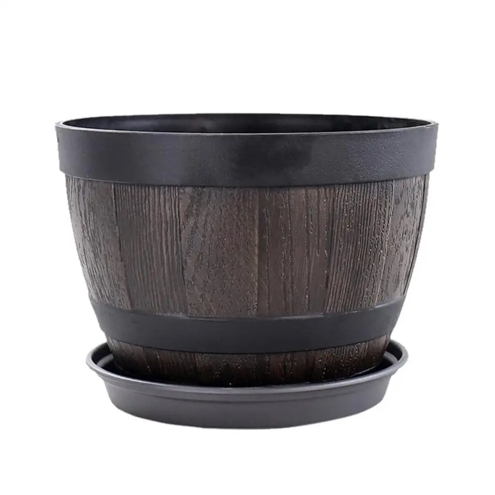 Durable Material: The barrel-type flowerpot is made of durable resin, which is wear-resistant, not easy to break.