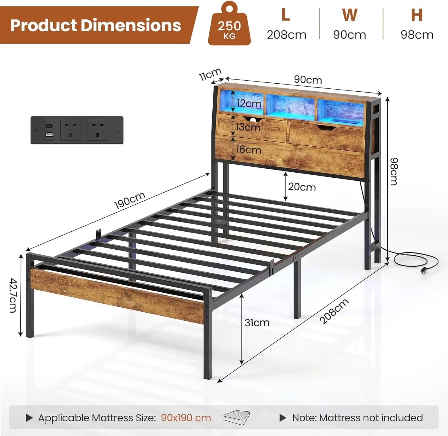 【With RGB LED Ambient Lighting】This single bed features a versatile RGB LED light strip. You have three convenient ways to control it: using the included remote, the touch controls on the strip itself, or a dedicated smartphone app. Easily customise colours, brightness, and choose from various lighting modes and dynamic effects. Beyond providing practical low-level lighting for nighttime, it includes a Music Sync Mode where the lights change colour and pulse in time with your music's rhythm. This instantly creates a romantic or vibrant ambiance, allowing you to personalise your bedroom atmosphere with a modern, tech-savvy touch.