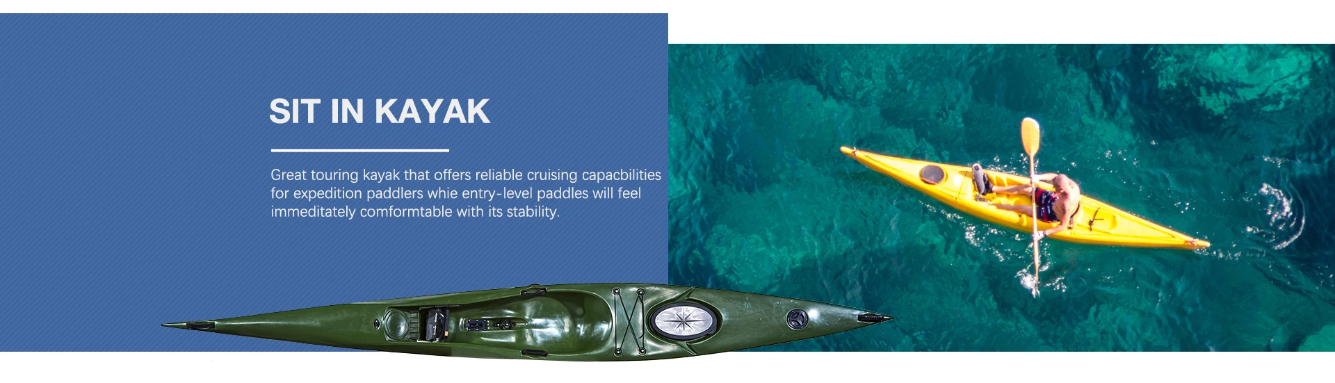 - Type: fishing kayak, touring kayak, single seat, sit-inside