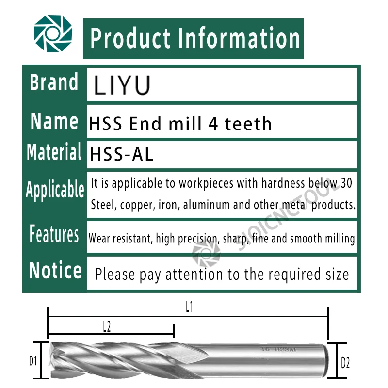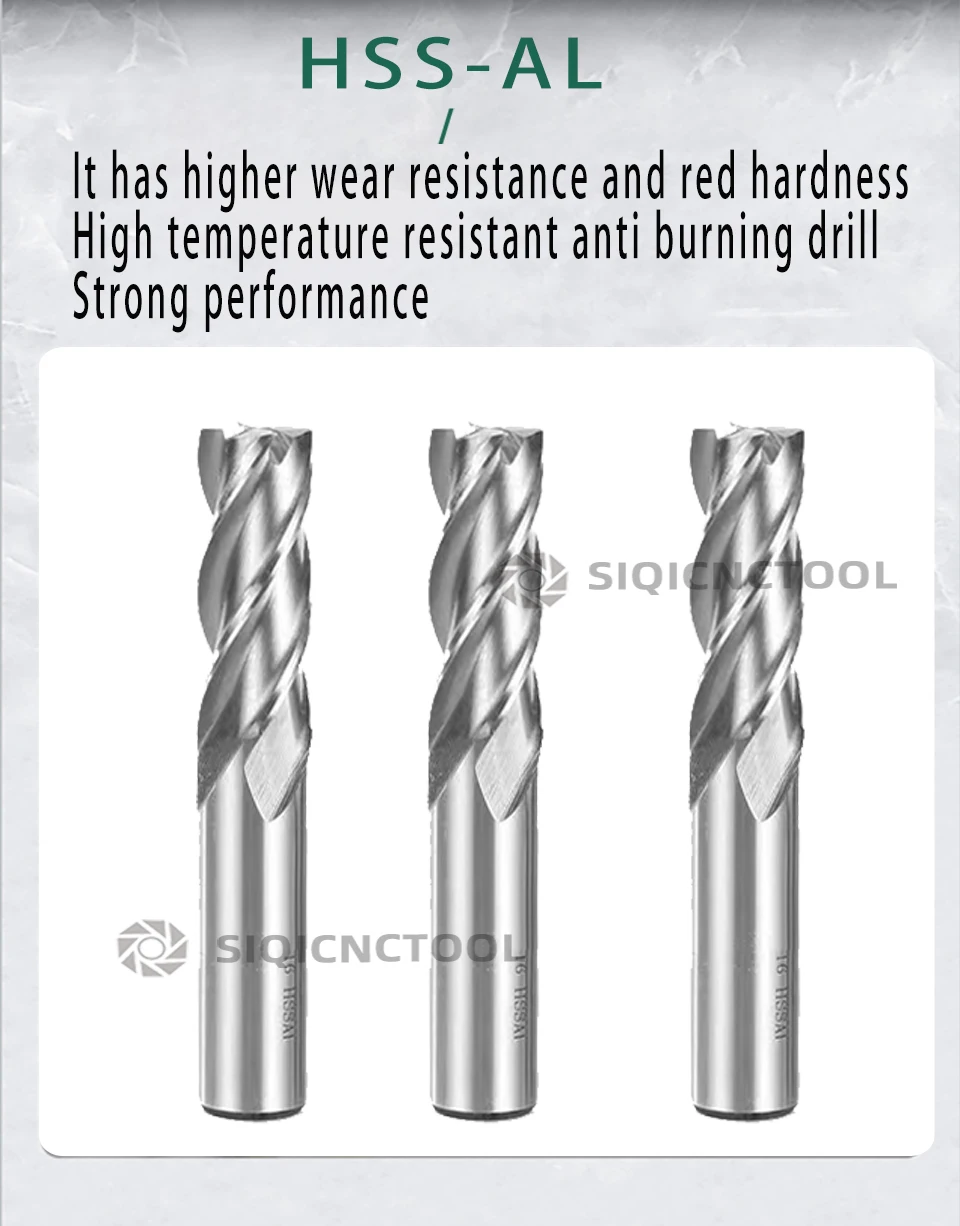 High-speed steel HSS-AL material is suitable for workpieces with hardness below 30: such as steel, copper, iron, aluminum and other metal products.