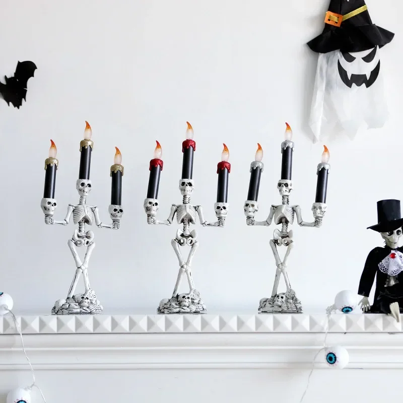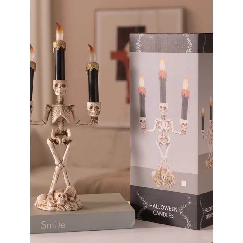 Skull Candlestick LED Halloween candle holders Flameless Candles Holder Stand Horror Props Halloween Decoration House Decor