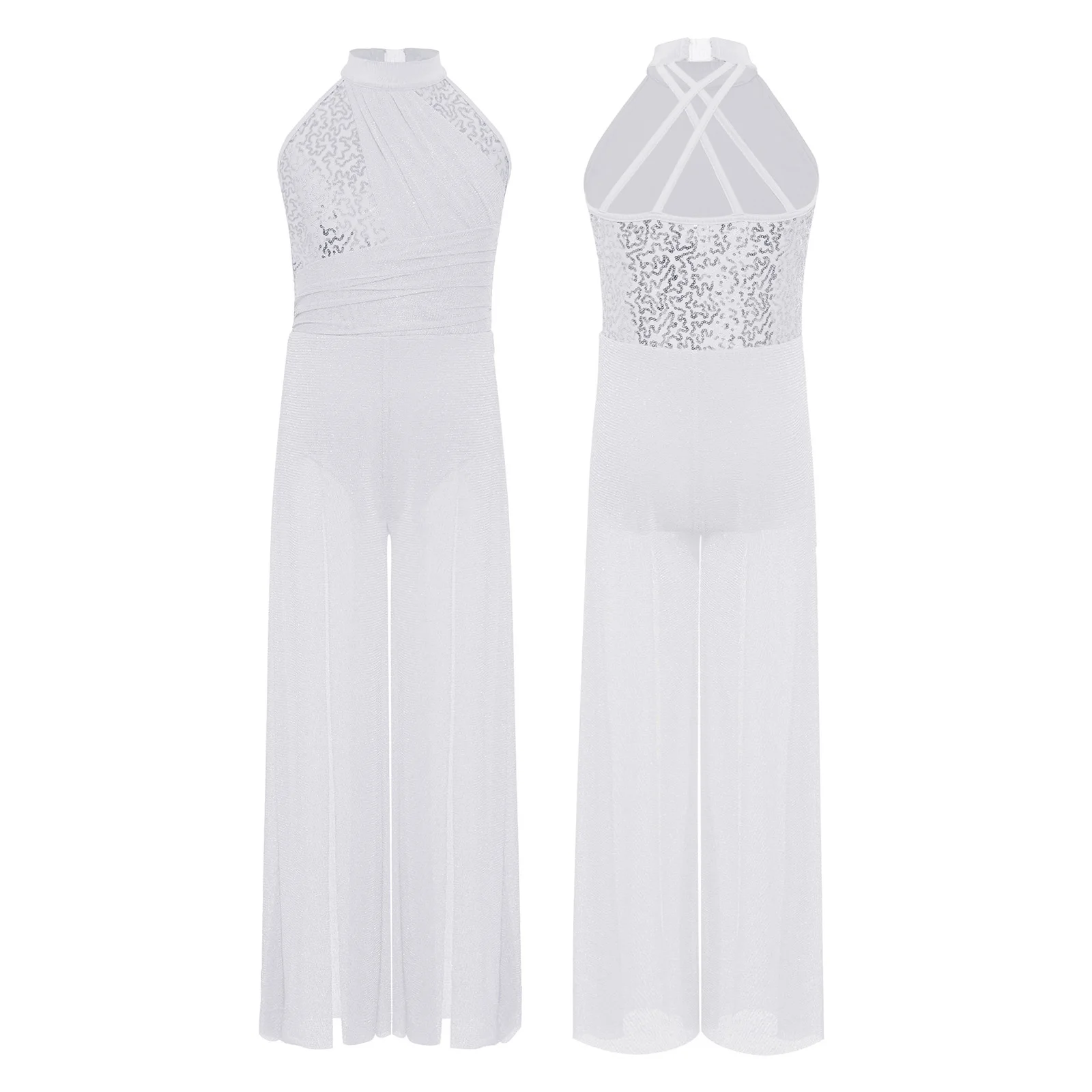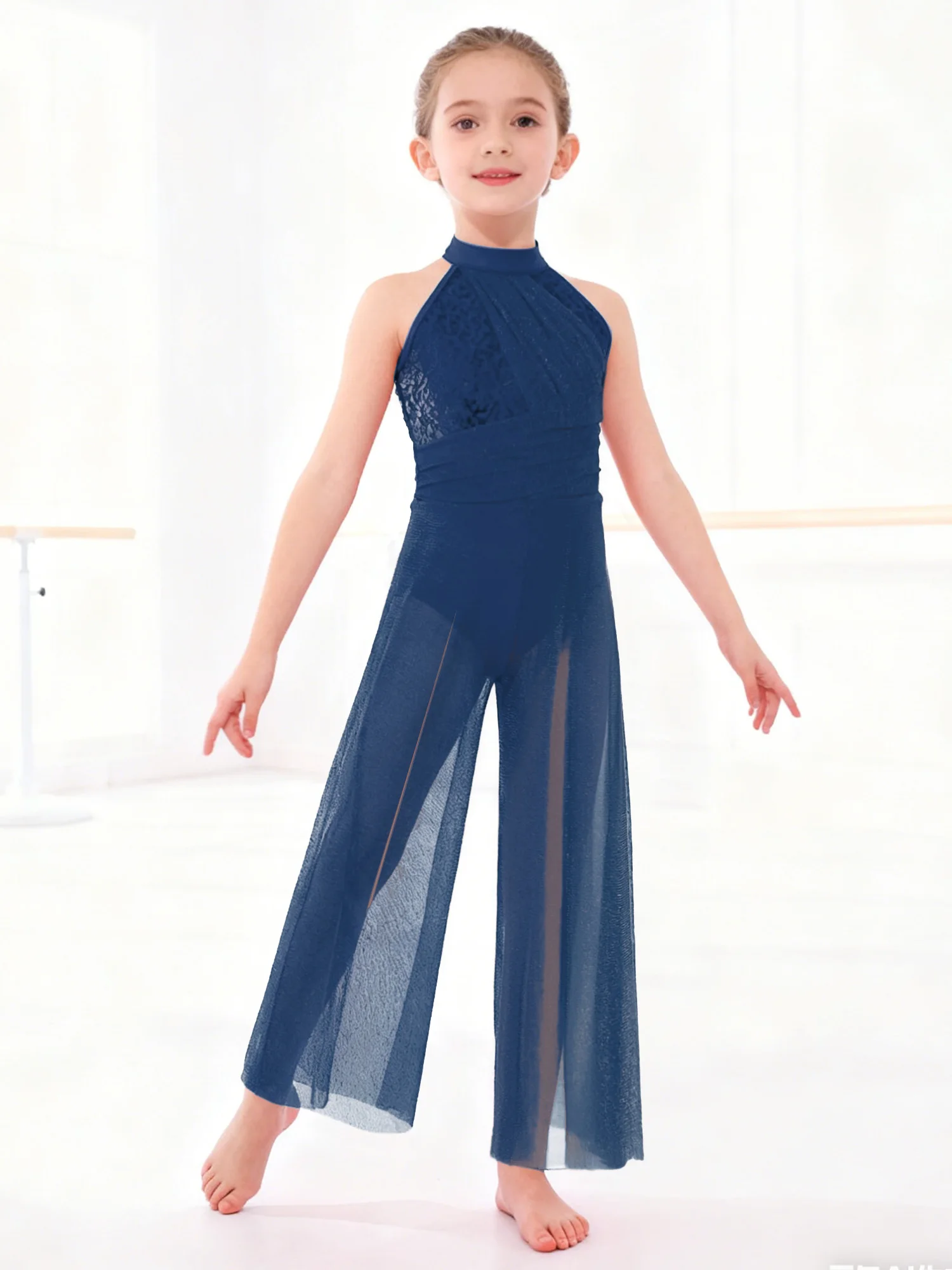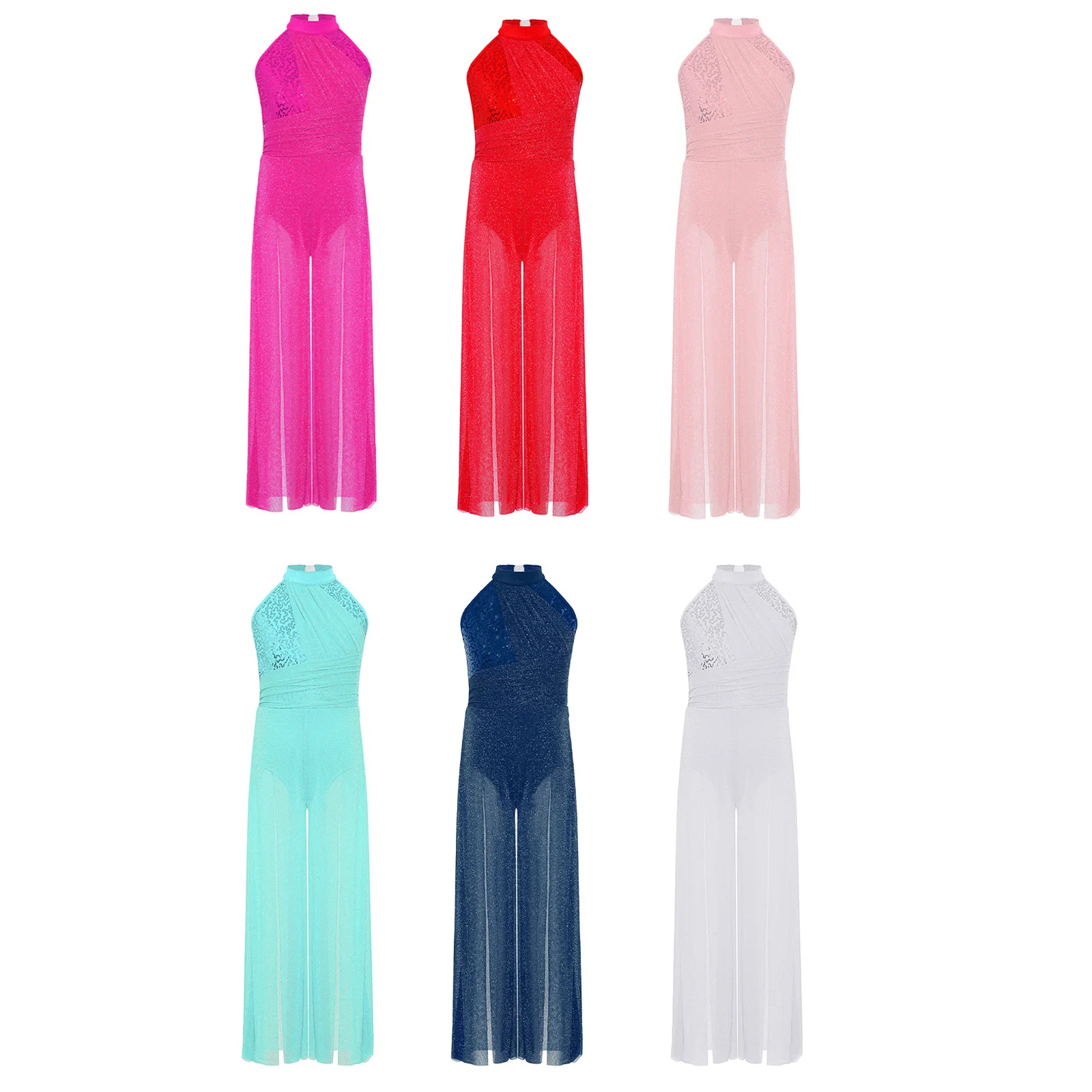The split wide-leg bodysuit style is fashionable and comfortable, suitable for lyrical dance performances, dance classes, recitals, or other special occasions.