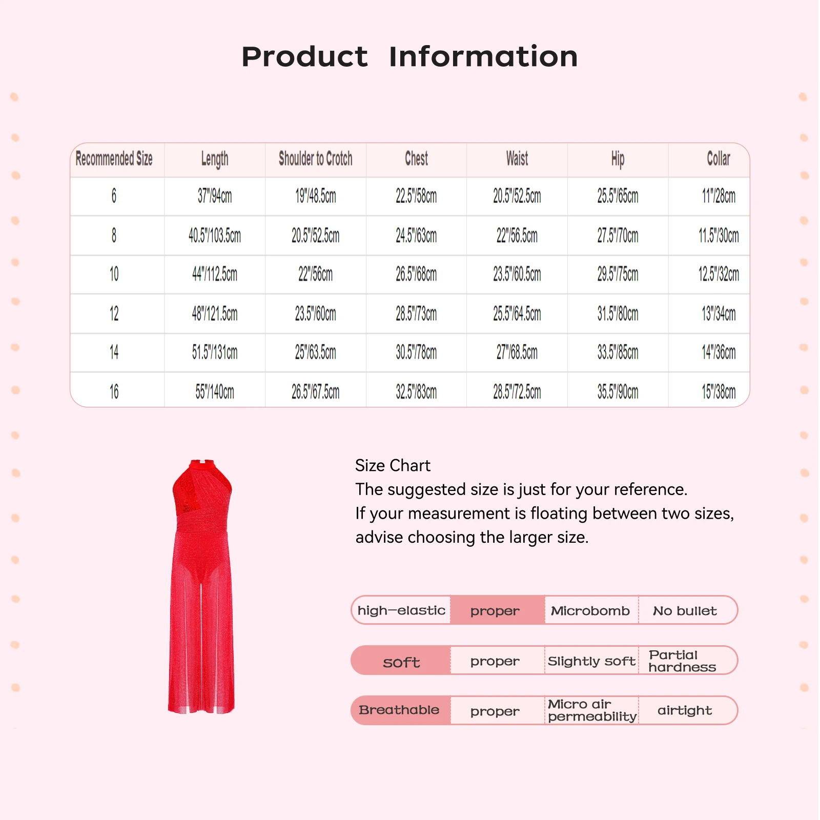Size Chart: The suggested size is just for your reference. If your measurement is floating between two sizes, advise choosing the larger size. (Measurements shown in the size chart refer to item measurements, not body)