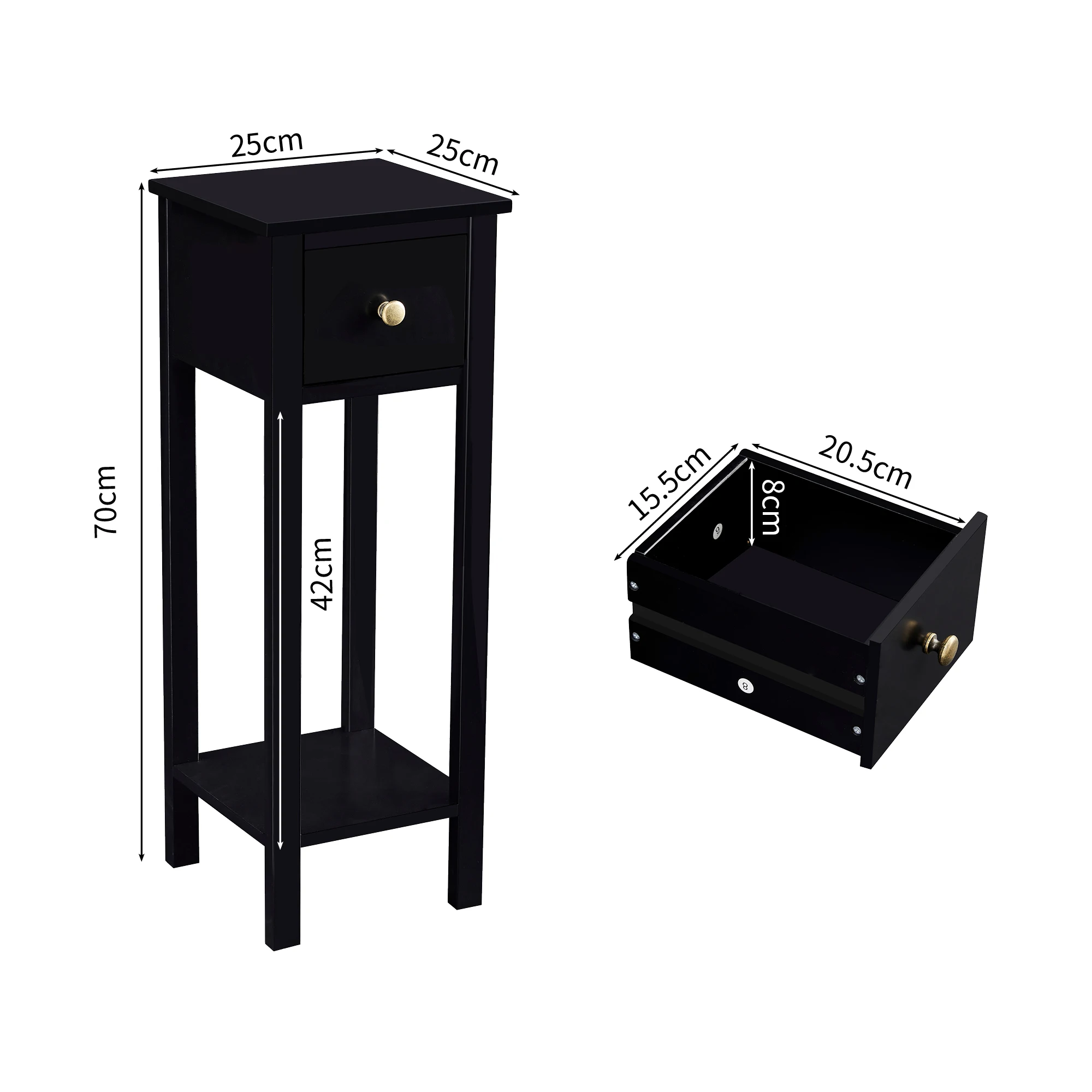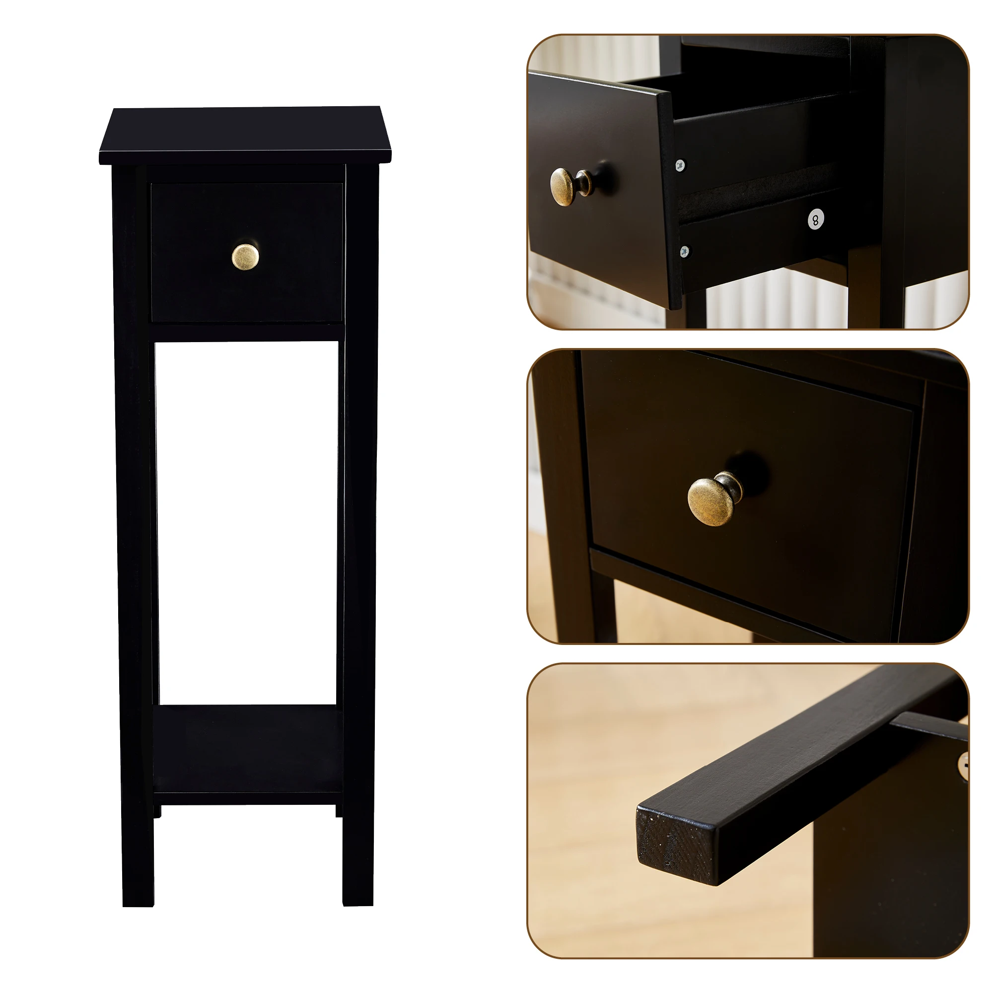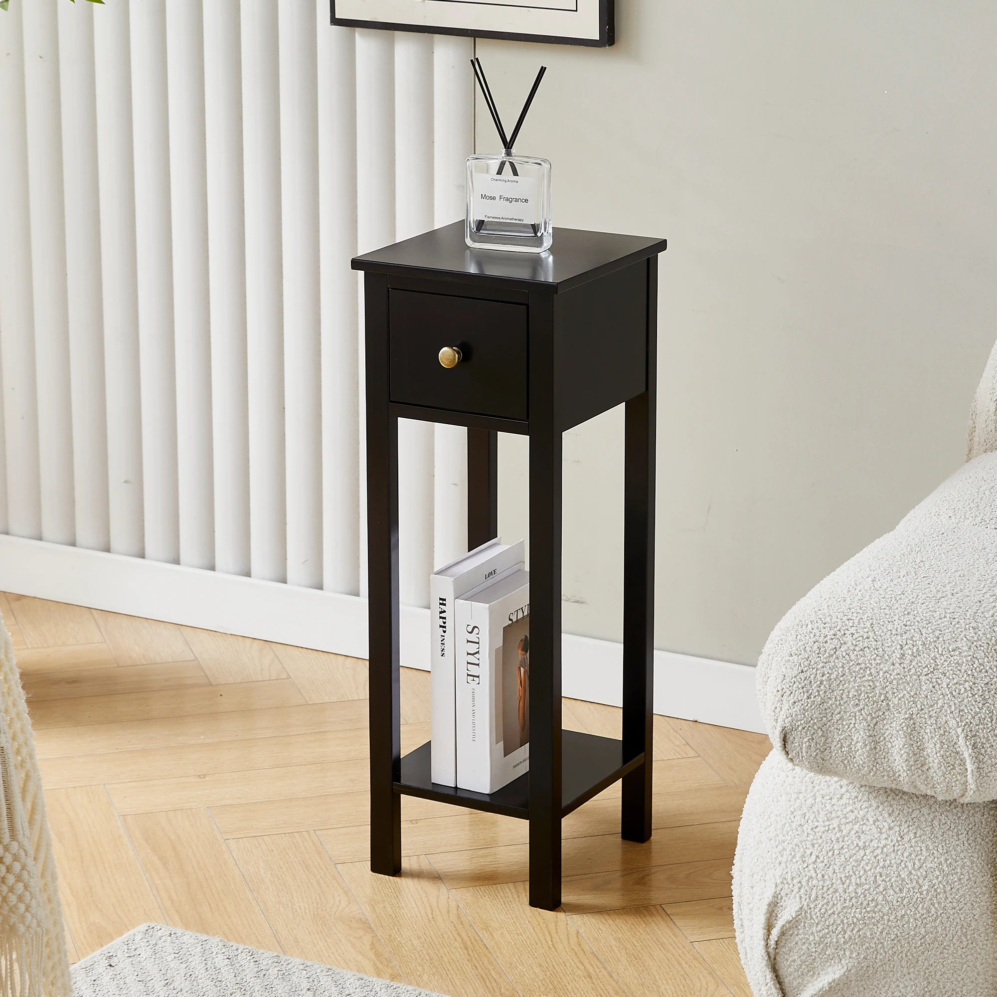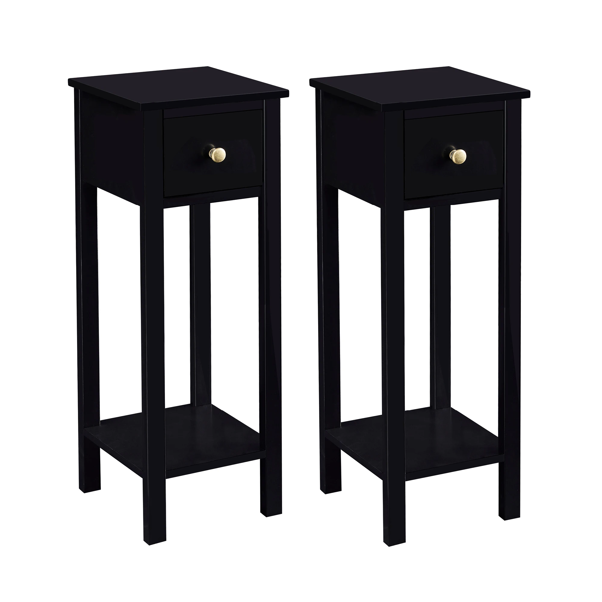DECENT STORAGE SPACE: Each of these end tables features a drawer to hold anything from keys to remotes and a shelf on the bottom with space for a small basket, providing ample storage space for your bedside, living room, or any place in between.