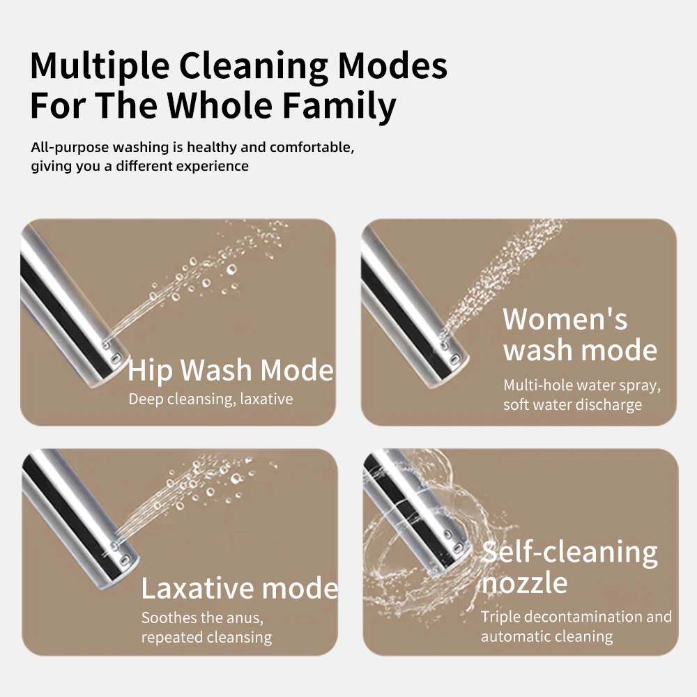 Children's Cleaning: Cleaning features designed specifically for children may use gentler water flow and nozzle angles to accommodate children's physical characteristics and needs. For example, the water flow is softer to avoid harming children's skin, and the angle of the nozzle is adjusted to better clean children's sensitive areas