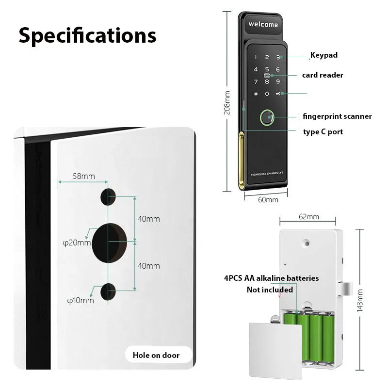 - Ways To Unlock: Card,FINGERPRINT,Bluetooth,App