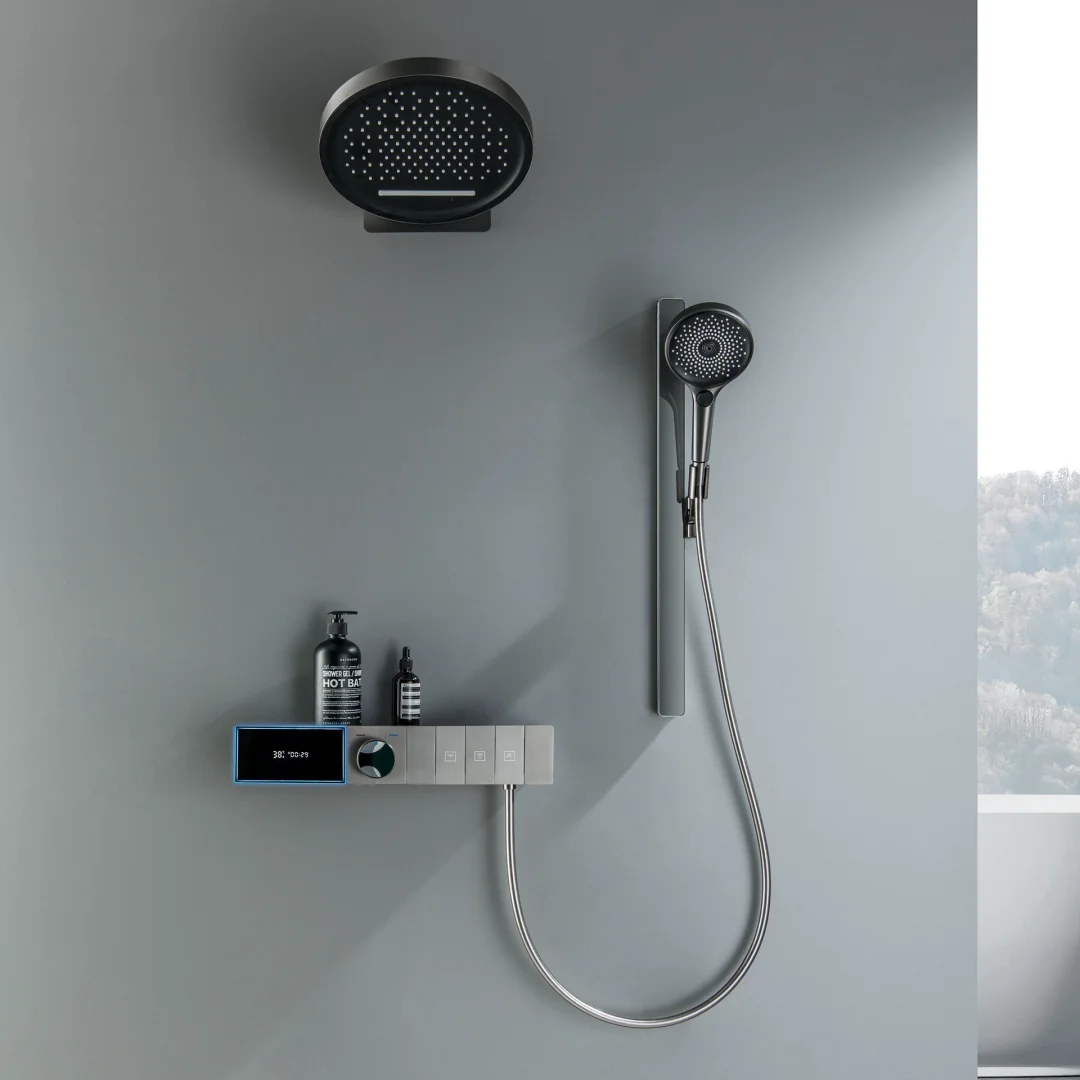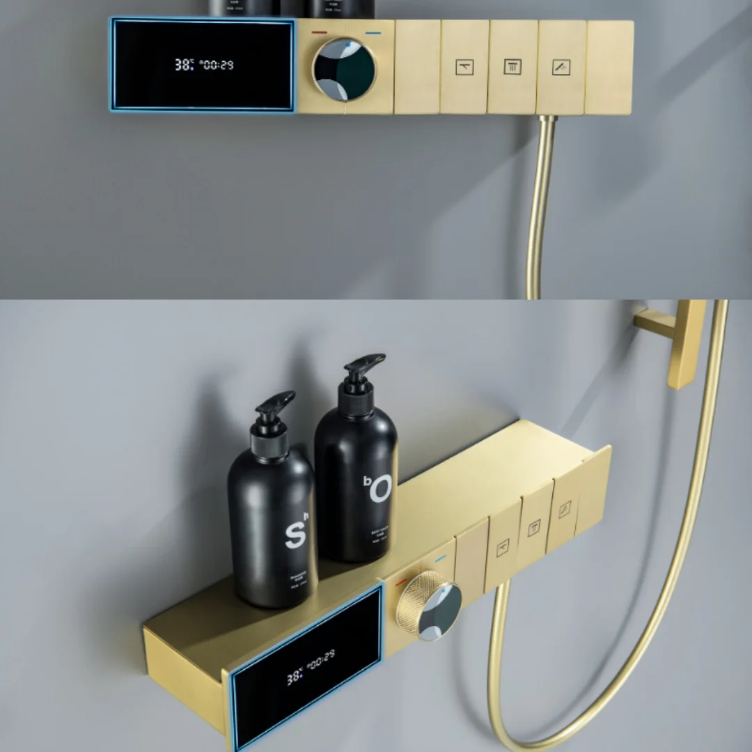 Smart Multifunction Brushed Rose Gold Bathroom Shower Faucet Concealed Rainfall Shower Faucet Ceiling Black Bath Shower Mixer