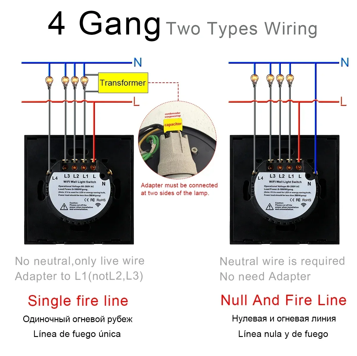 UNKAS Smart Switches 1/2/3 Gang Wifi Touch Light Switch Wall Sensor Switches