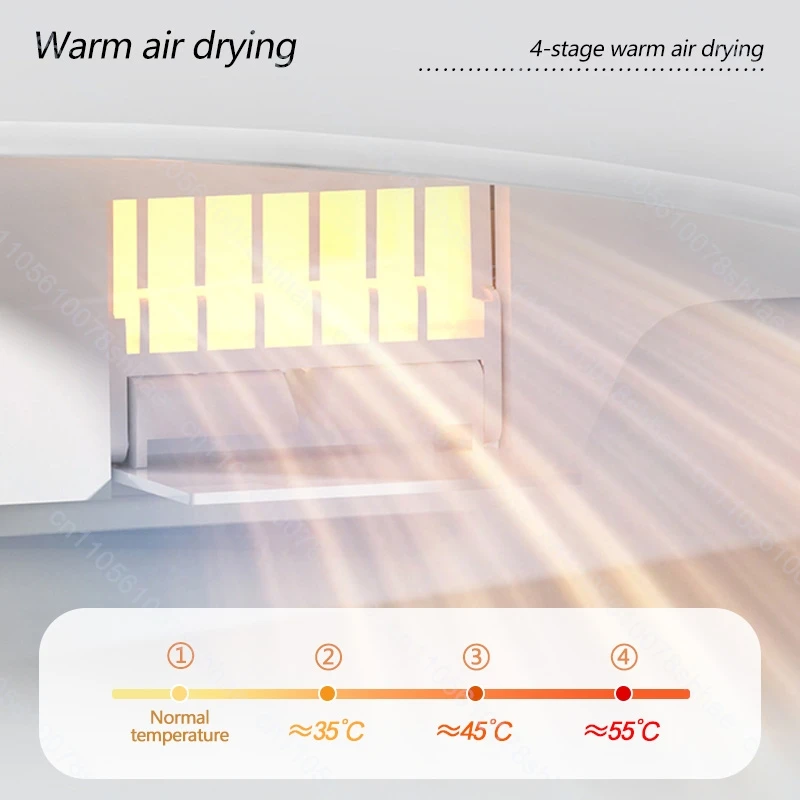 — Drying System: Adjustable warm air drying