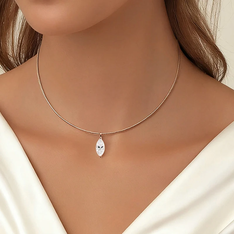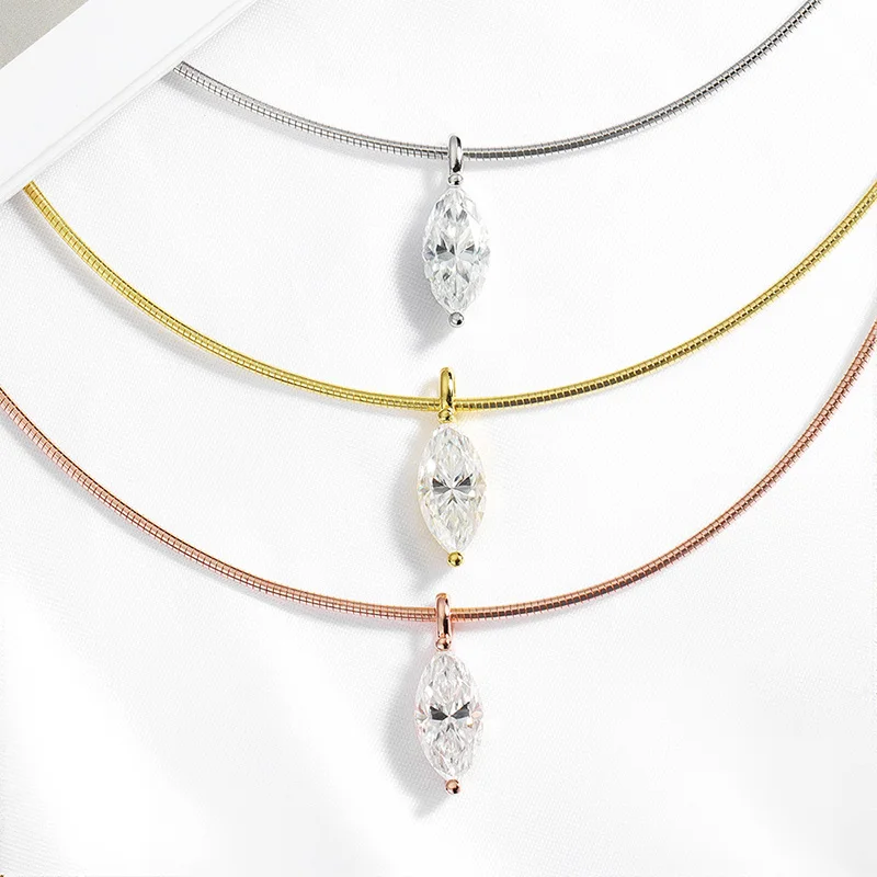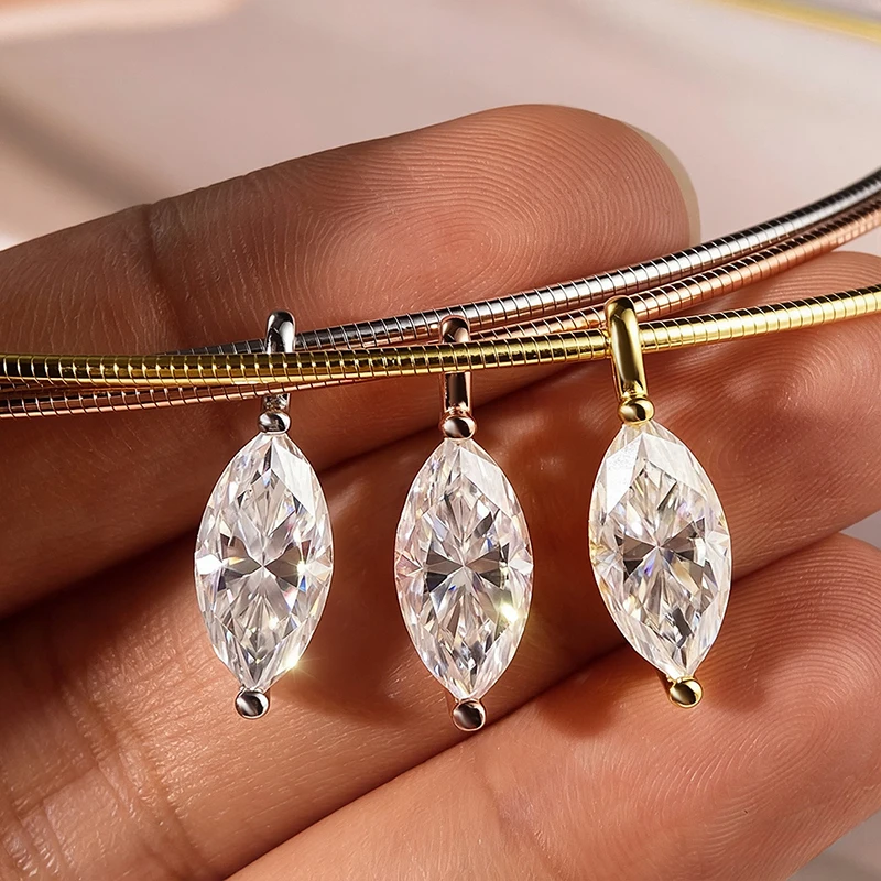 Smyoue 3CT 7*14MM Marquise Cut Moissanite Necklace for Women Solitaire Pendant Sparkling Chain Lab Diamond Pure 925 Jewelry