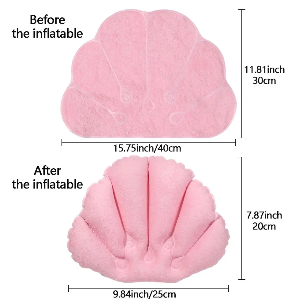 3, The bath pillow is inflatable, and it can be deflated when not in using, does not take up too much space, the back also features two suction cups for convenient to fix.