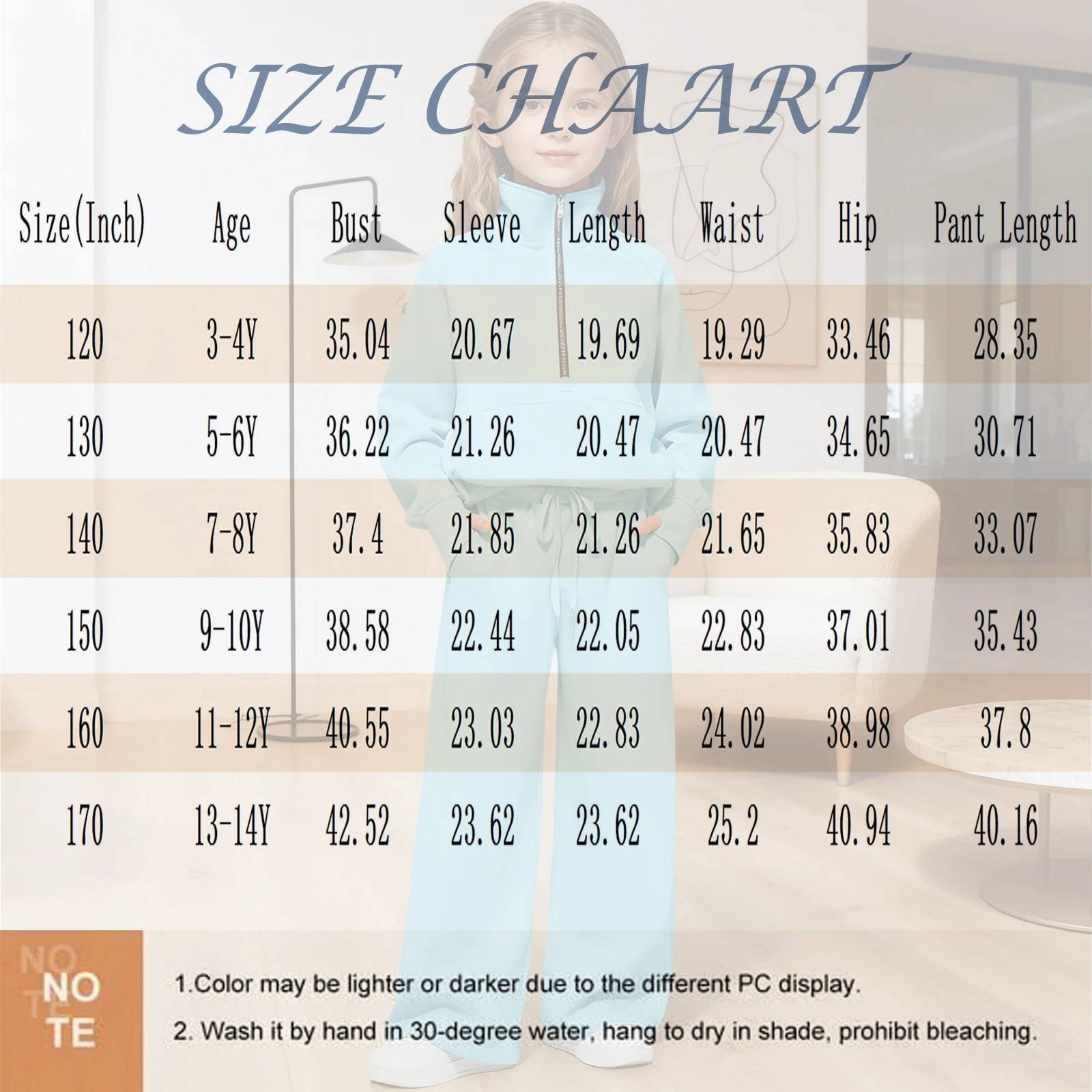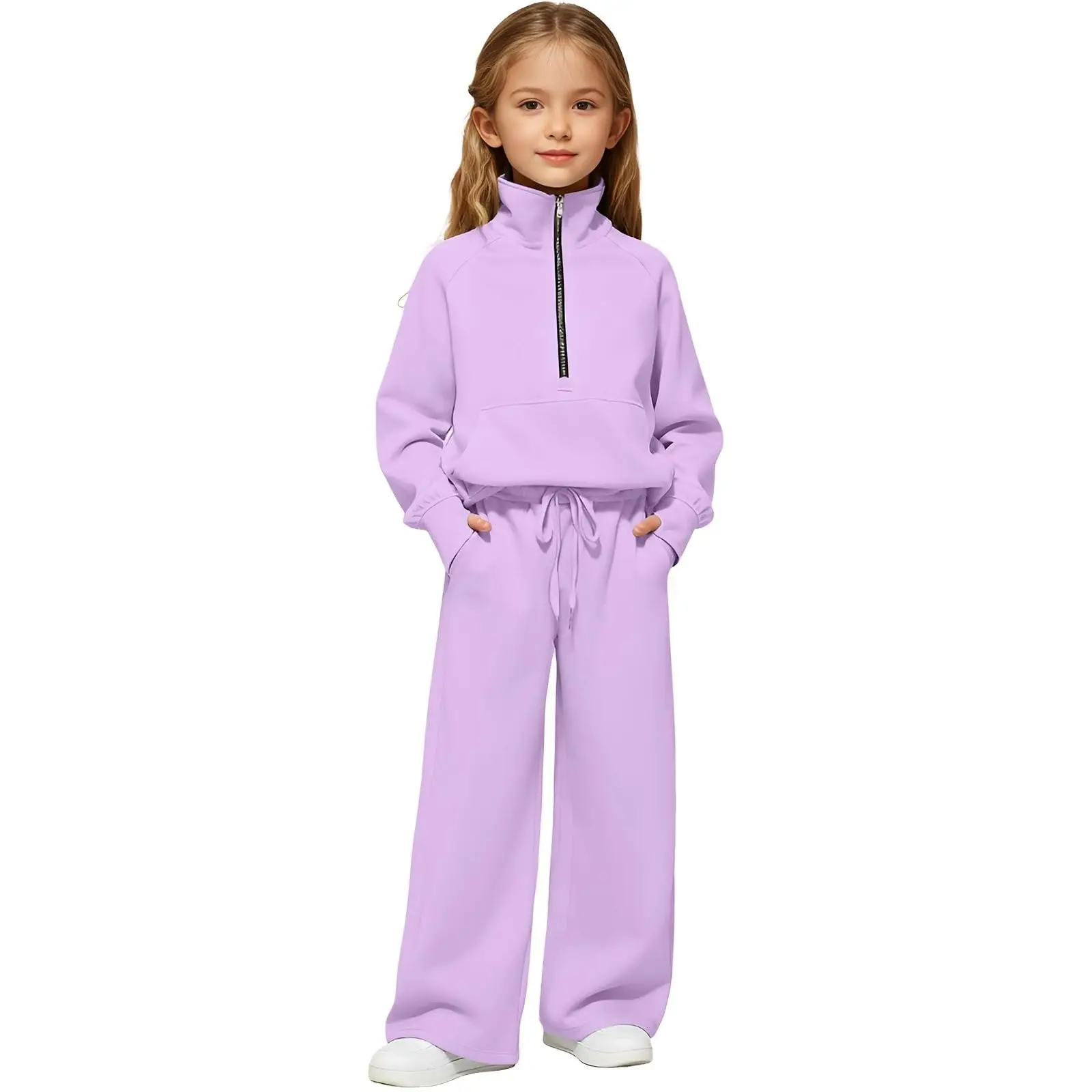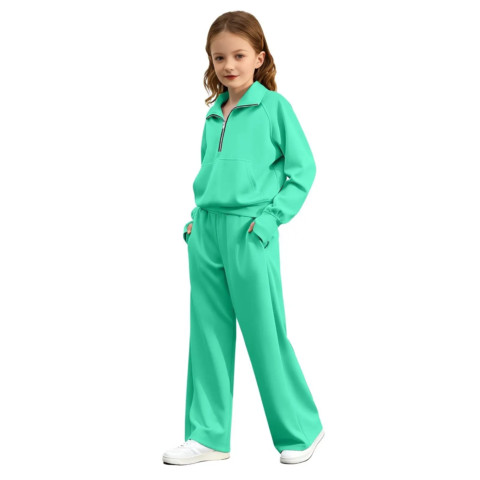 Girls’ High-Neck Half-Zip Sweatshirt + Long Pants Sports Fleece Casual Children’s Set